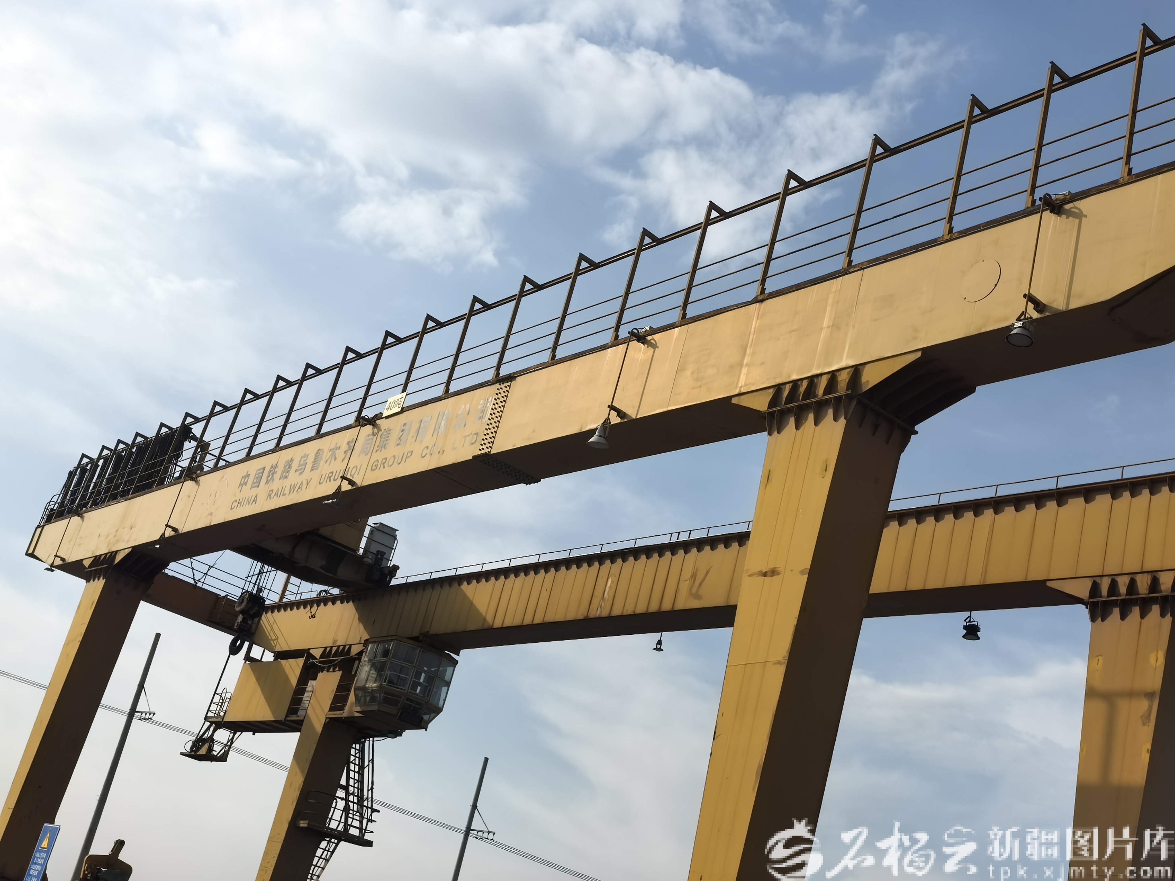在霍尔果斯铁路换装场,一部龙门吊换装作业现场一角(资料图)。石榴云/新疆日报记者 谢慧变摄
