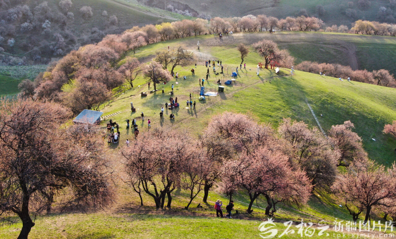 4月5日,那拉提杏花谷万亩野杏林,迎来踏青赏花热潮。张文庭 摄