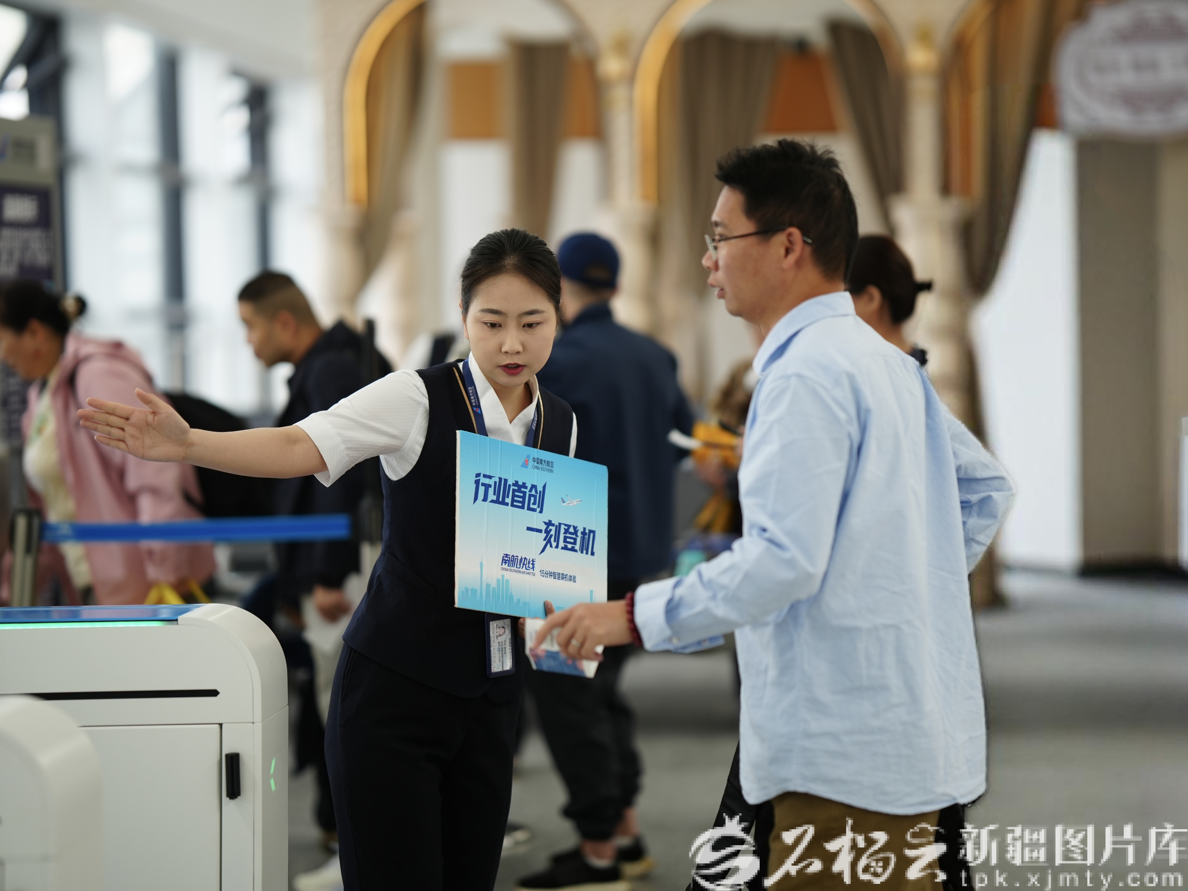 4月10日,南航“一刻登机”服务落地乌鲁木齐—广州航线。图/南航提供