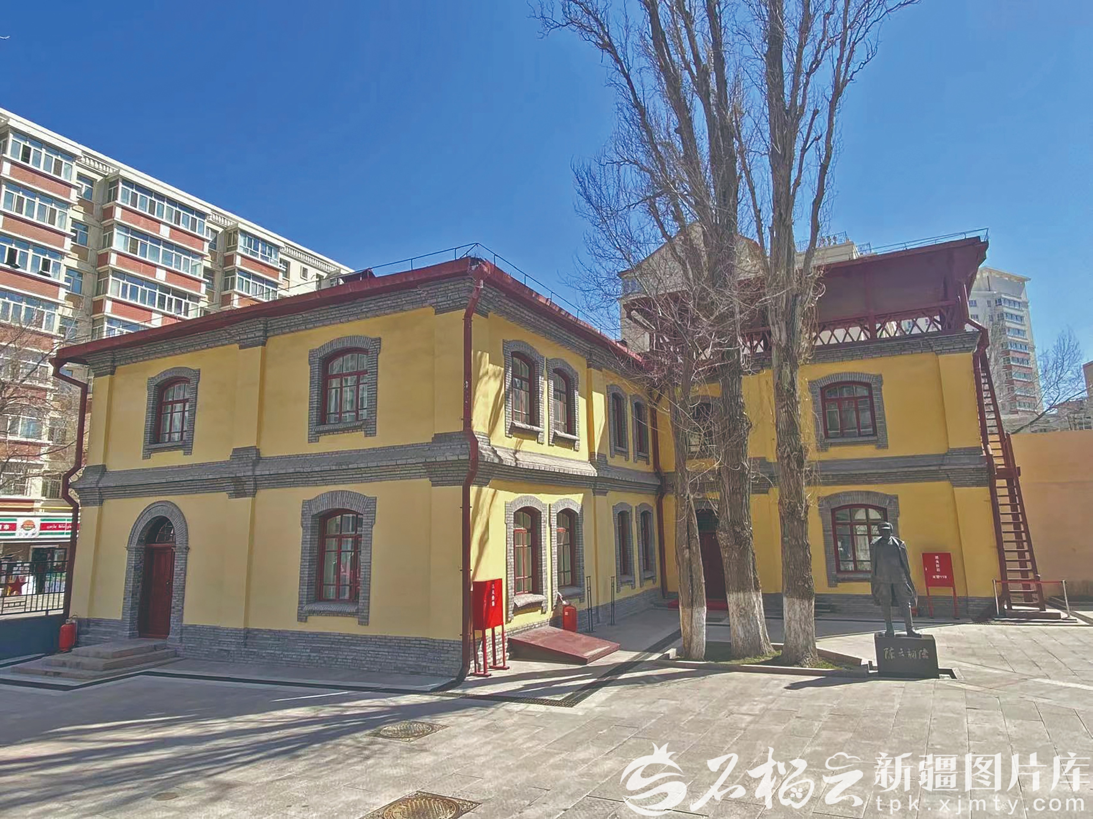 在乌鲁木齐胜利路的现代楼群间,静立着一座明黄色的二层小楼,它与一座屋顶镶嵌巨大红星的现代建筑并肩而立,宛若一座跨越八十余载的时空桥梁,连接着烽火岁月与和平年代,也连接着永不褪色的集体记忆。