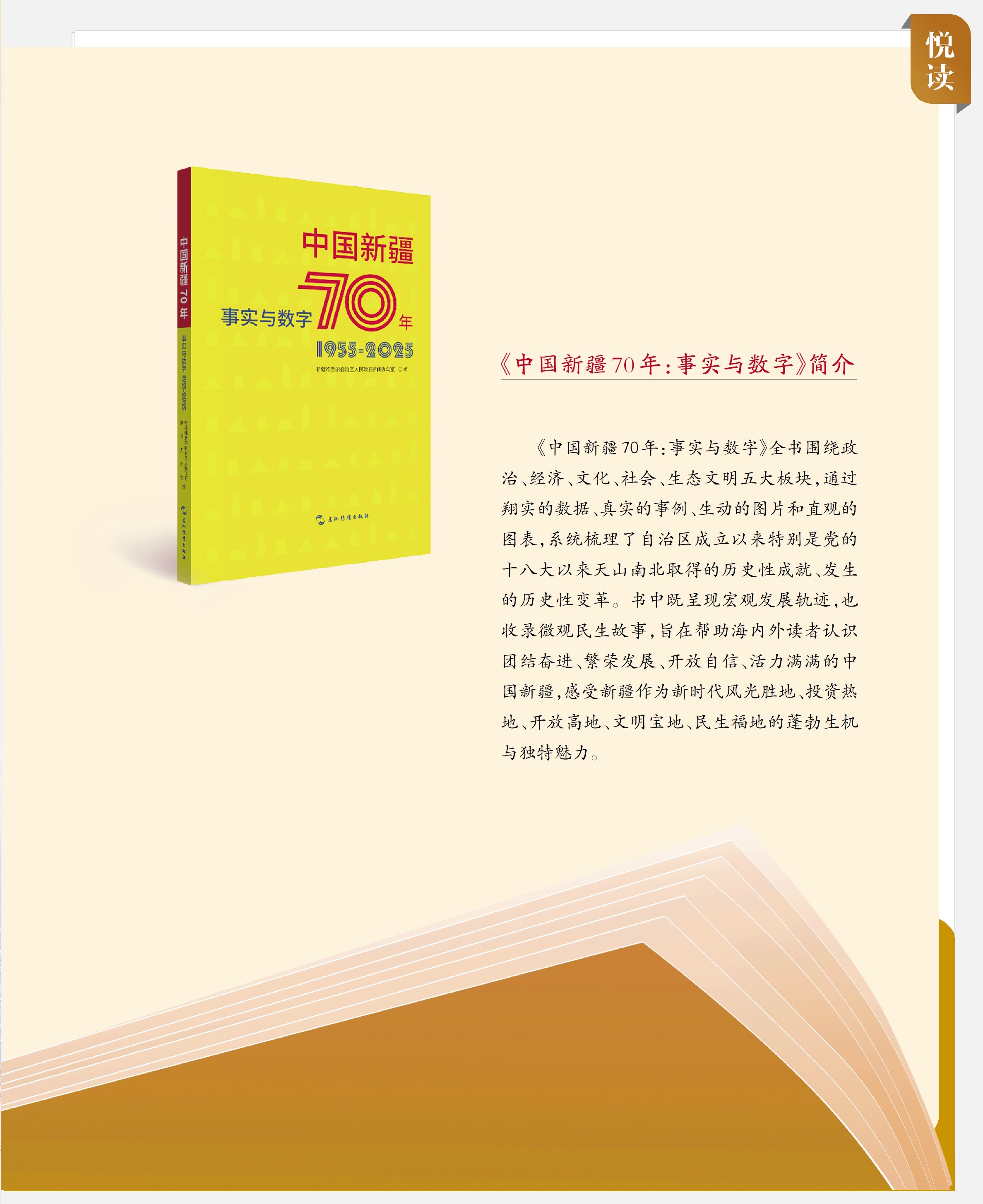 2025年,新疆维吾尔自治区迎来七十华诞。在这具有里程碑意义的时刻,由自治区人民政府新闻办公室和五洲传播出版社共同策划出版的《中国新疆70年:事实与数字》如期与读者见面。