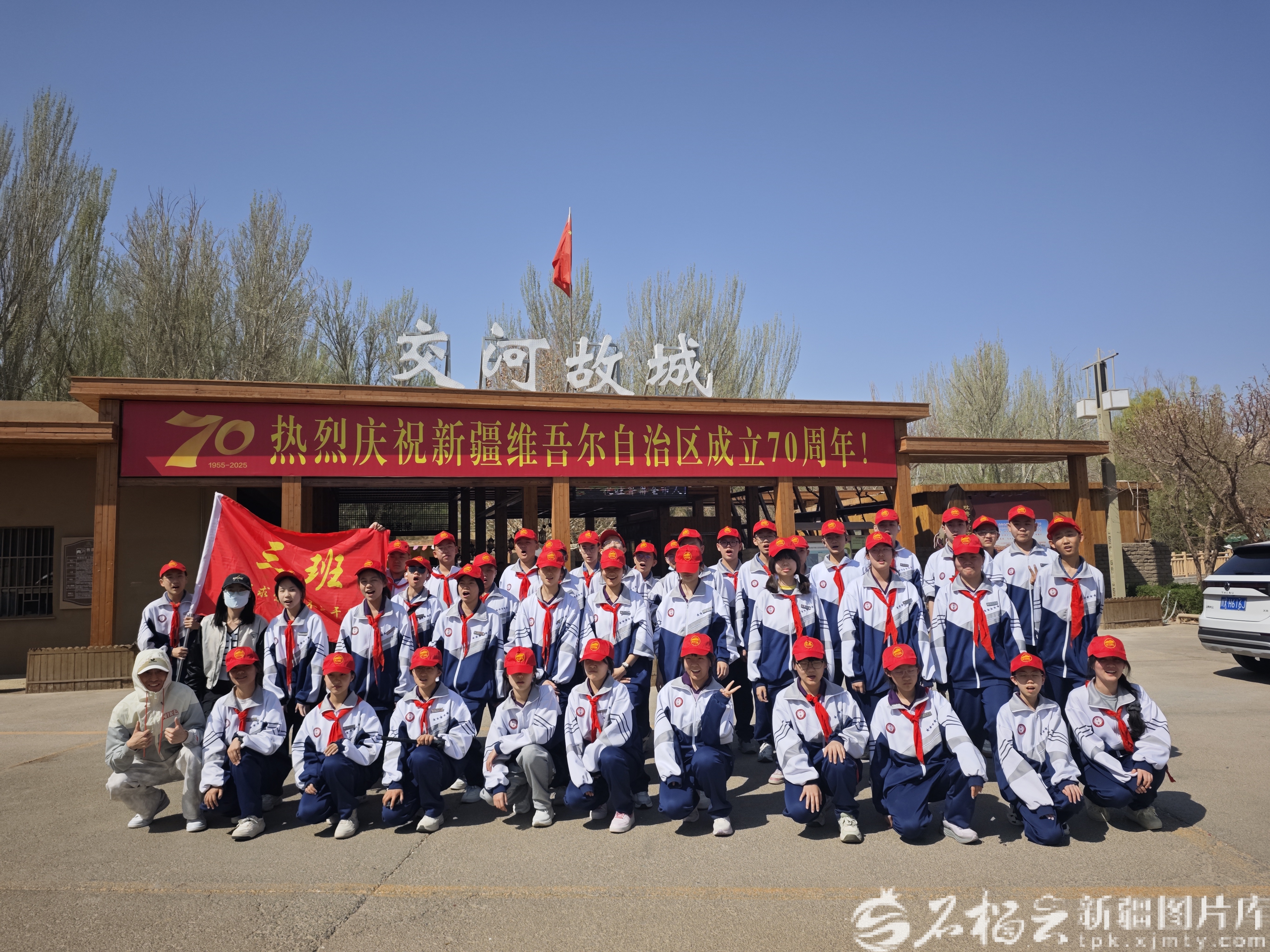 4月3日,乌鲁木齐市第一中学高新校区学生在吐鲁番研学。陈文嫱摄
