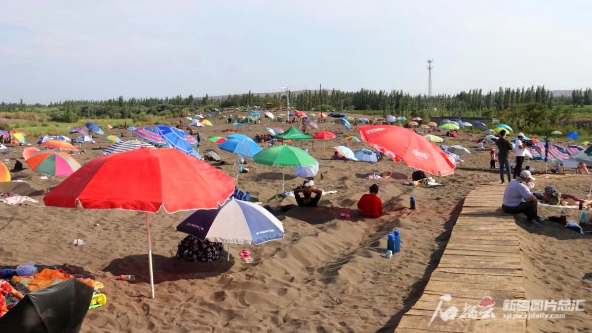 今年7月25日,游客在温泉县博尔塔拉河国家湿地公园游览。石榴云/新疆日报记者 汤永摄