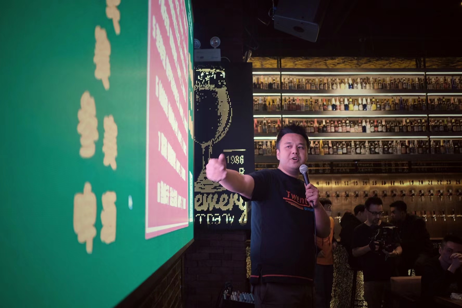 刘亮坤向啤酒爱好者介绍新款啤酒产品。受访者供图