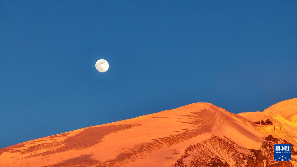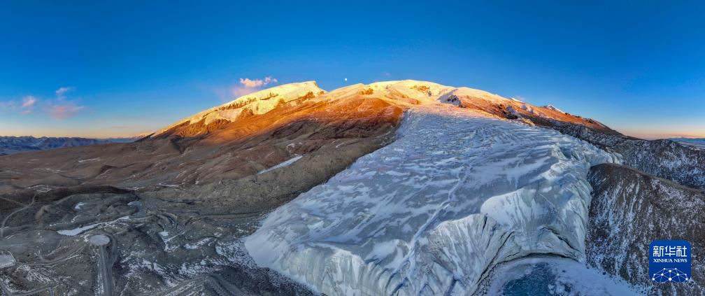 这是在新疆塔什库尔干塔吉克自治县慕士塔格冰川公园拍摄的夕阳下的慕士塔格峰(1月12日摄,无人机照片)。