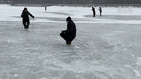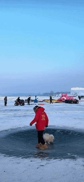 这不天生就带“防摔倒系统”当然不会摔倒不算一项运动但自己给自己挖个坑这项运动就有点抽象了松花江上冻到数米厚的冰层用工具挖出一个冰坑玩的就是自己挖的坑自己跳话说哈尔滨这种游玩的冰坑还挺多大家没事可以去找找