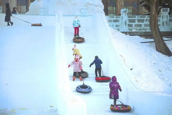 当然最抢手的还属冰雪滑梯其实冰雪大世界的网红滑梯虽然长但如果你想体验“24小时随时可滑”小编还是建议自己准备一个雪圈或者简易雪板因为松花江两岸和市区的公园里有各种免费的滑道甚至一些野坡也成为享受冰雪运动的好去处