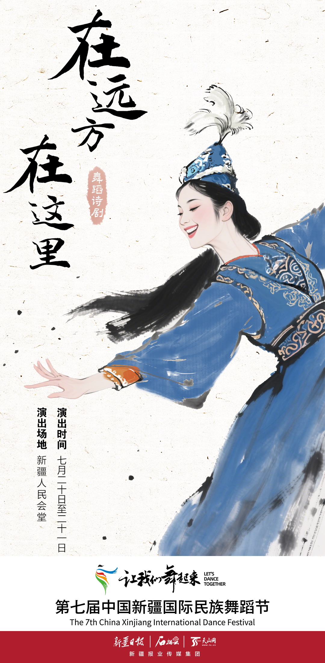 手绘海报|第七届中国新疆国际民族舞蹈节——舞蹈诗剧《在远方 在这里》