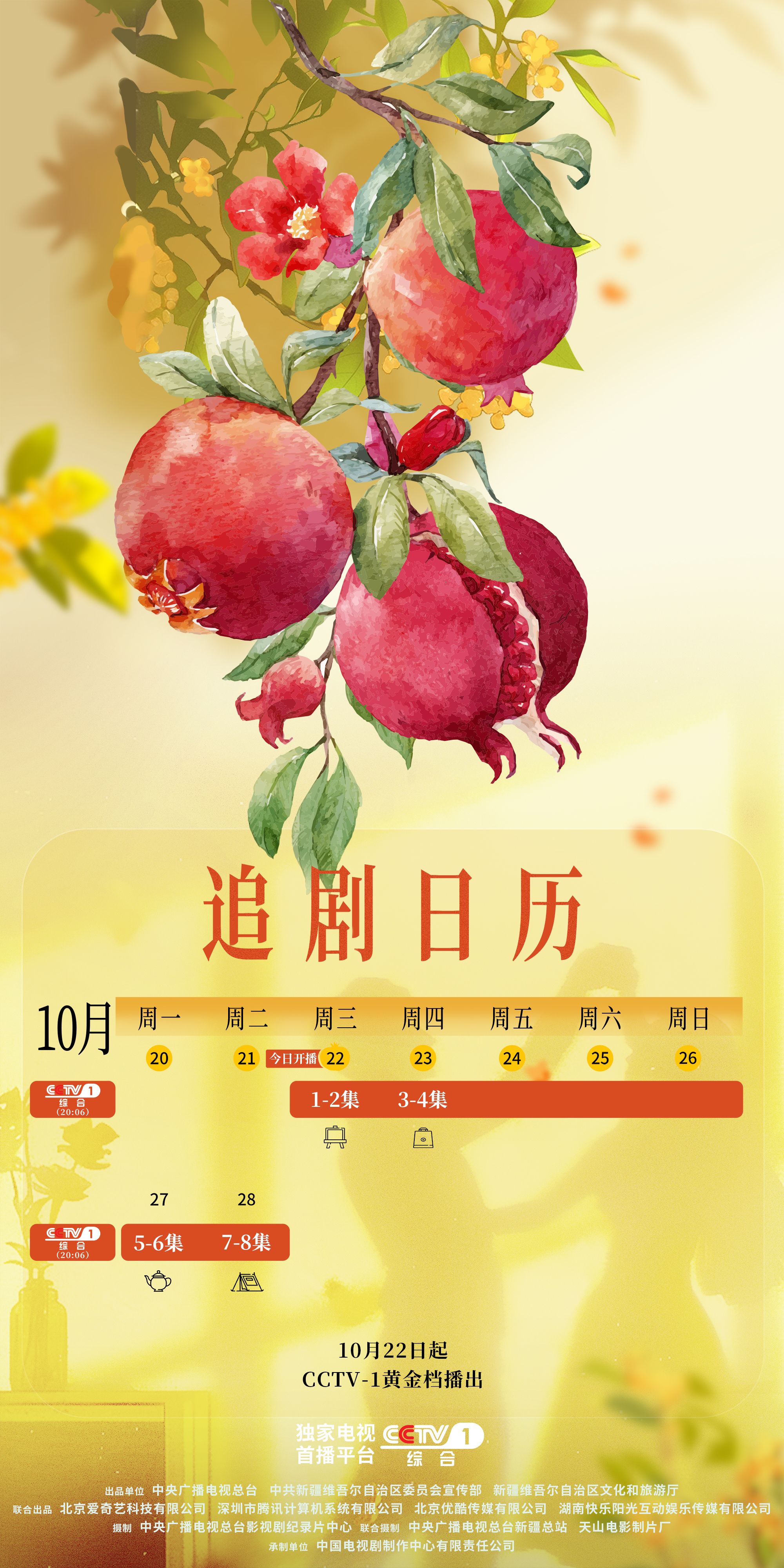 故事已开篇,在平凡的日子里把烟火与坚守烩成生活的盛宴!中央广播电视总台、新疆维吾尔自治区党委宣传部、新疆维吾尔自治区文旅厅共同出品的首部新疆都市情感剧《红石榴餐厅 》今晚20:06,锁定CCTV-1黄金档,敬请期待!
