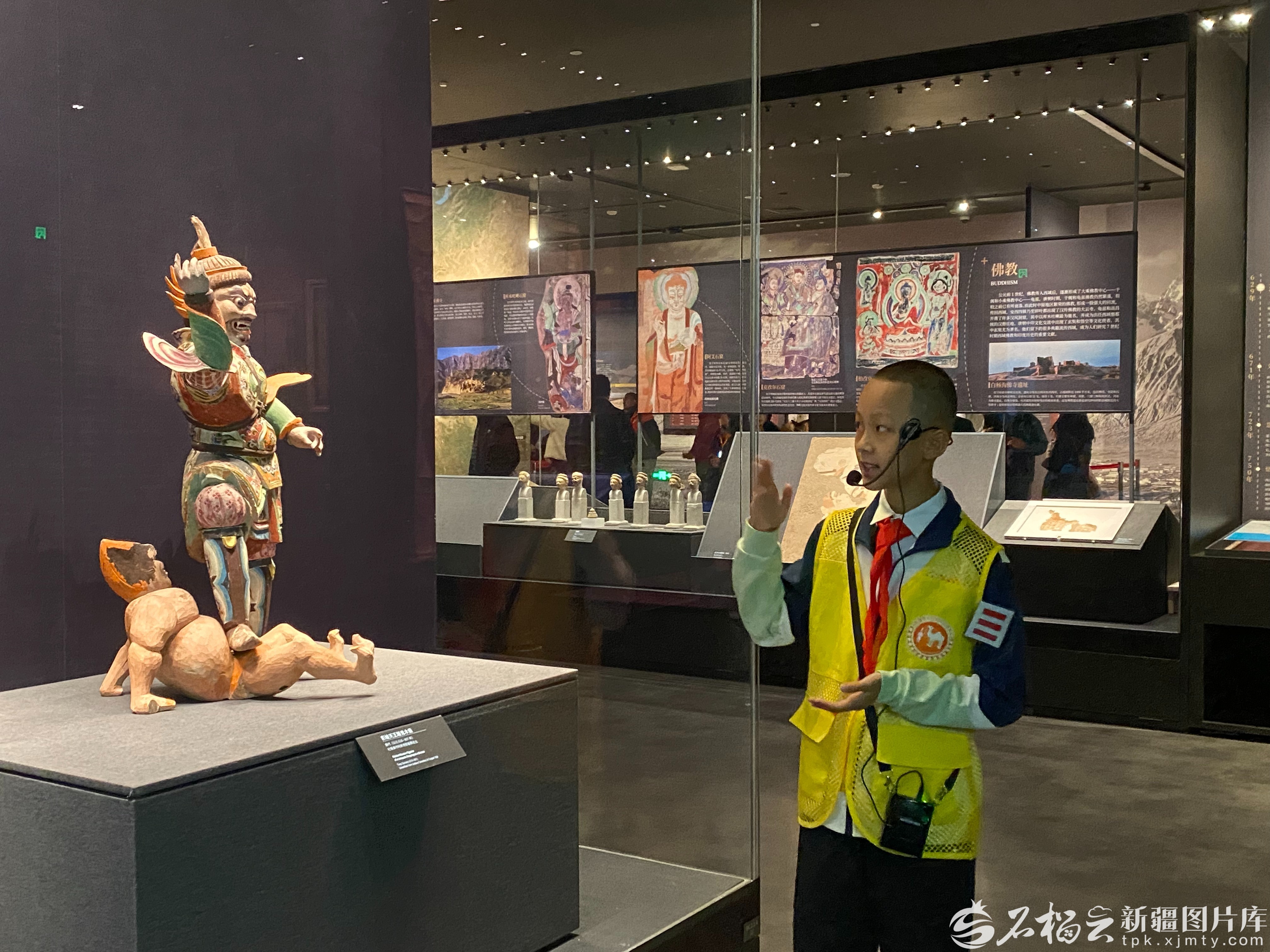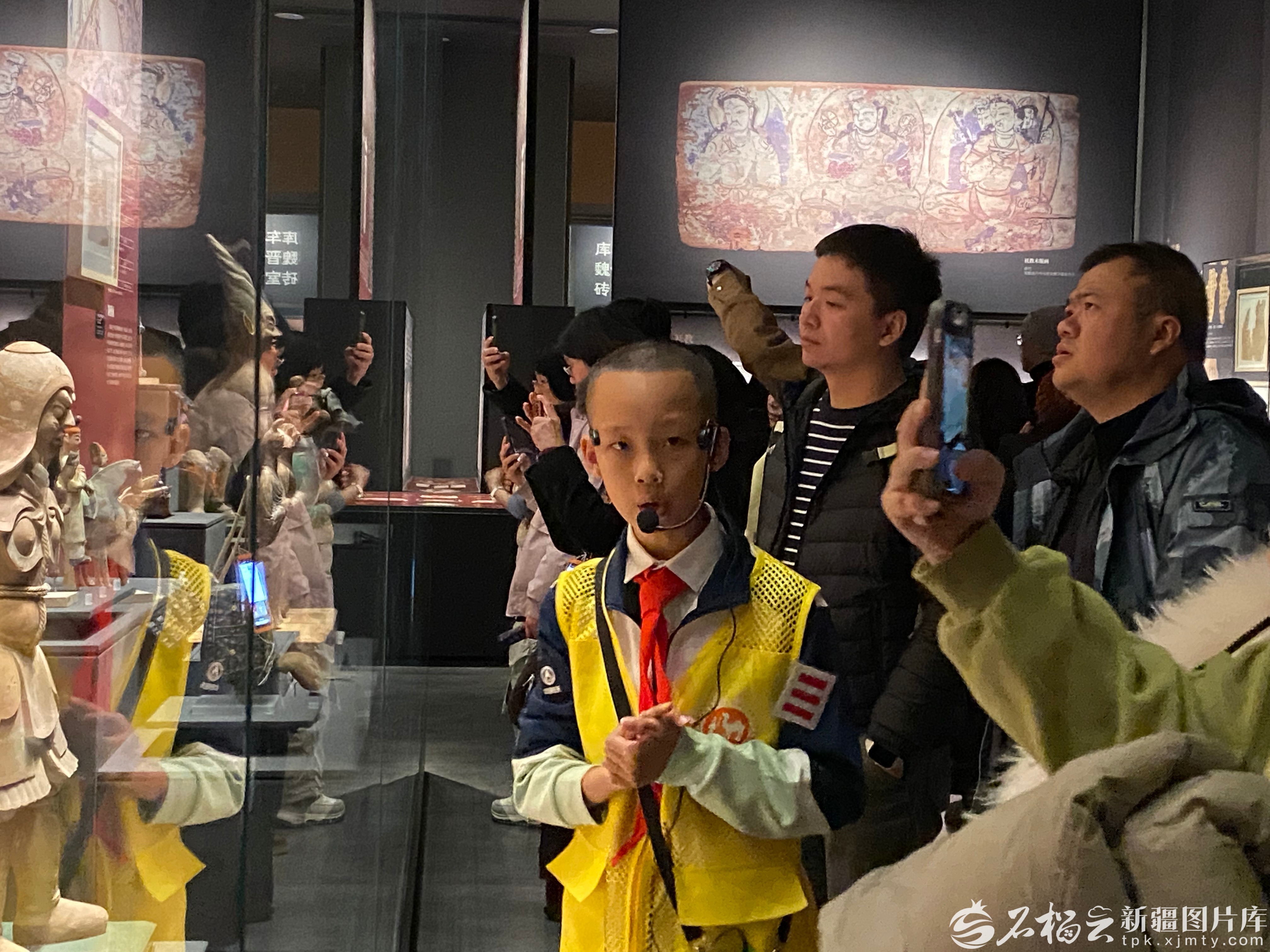 11月30日,在新疆博物馆历史厅,10岁的“小小讲解员”唐疆尧正在给游客讲解。石榴云/新疆日报记者 赵梅摄