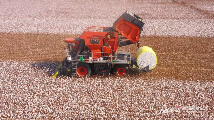 第一件事就是新疆的超级棉田。全球棉花看中国,中国棉花看新疆,罗振宇坦言,一直以来,自己都有一个误解:在新疆采收棉花是一个苦活、累活,而今年,新疆超级棉田里的国产采棉打包机令他大开眼界,“一台机器,一小时能采上几十亩,15分钟,一个2.3吨大的‘棉包’就能吐出来。”