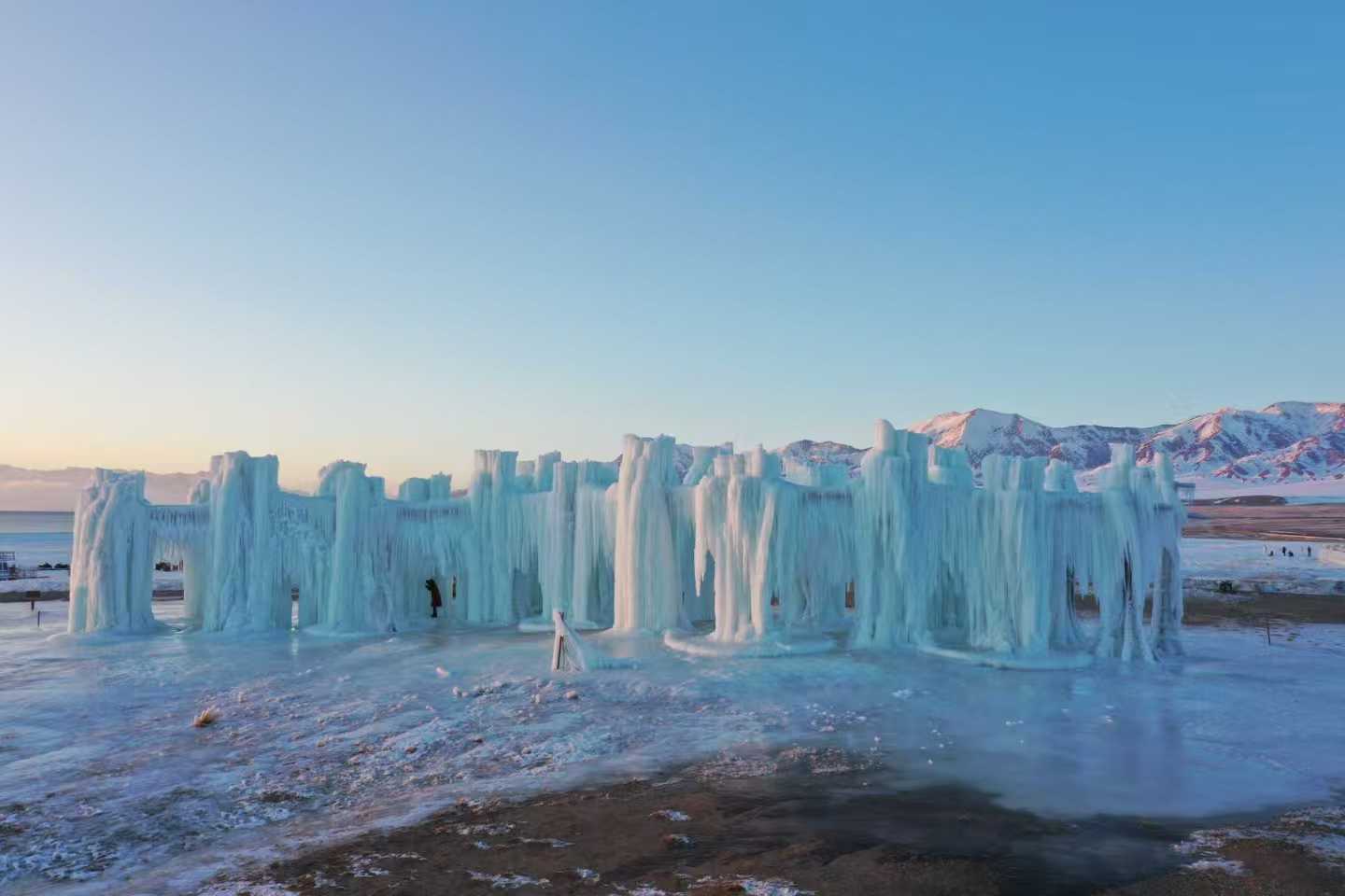 “这不是刻意雕刻,而是与自然合作,‘养’出来的风景。”赛里木湖风景名胜区管理委员会旅游发展管理局干部丽娜·努尔巴哈提说。今年冬季,景区邀请专业团队,结合当地气候和水文条件,在湖岸以独特方式“培育”出这片冰瀑奇观。