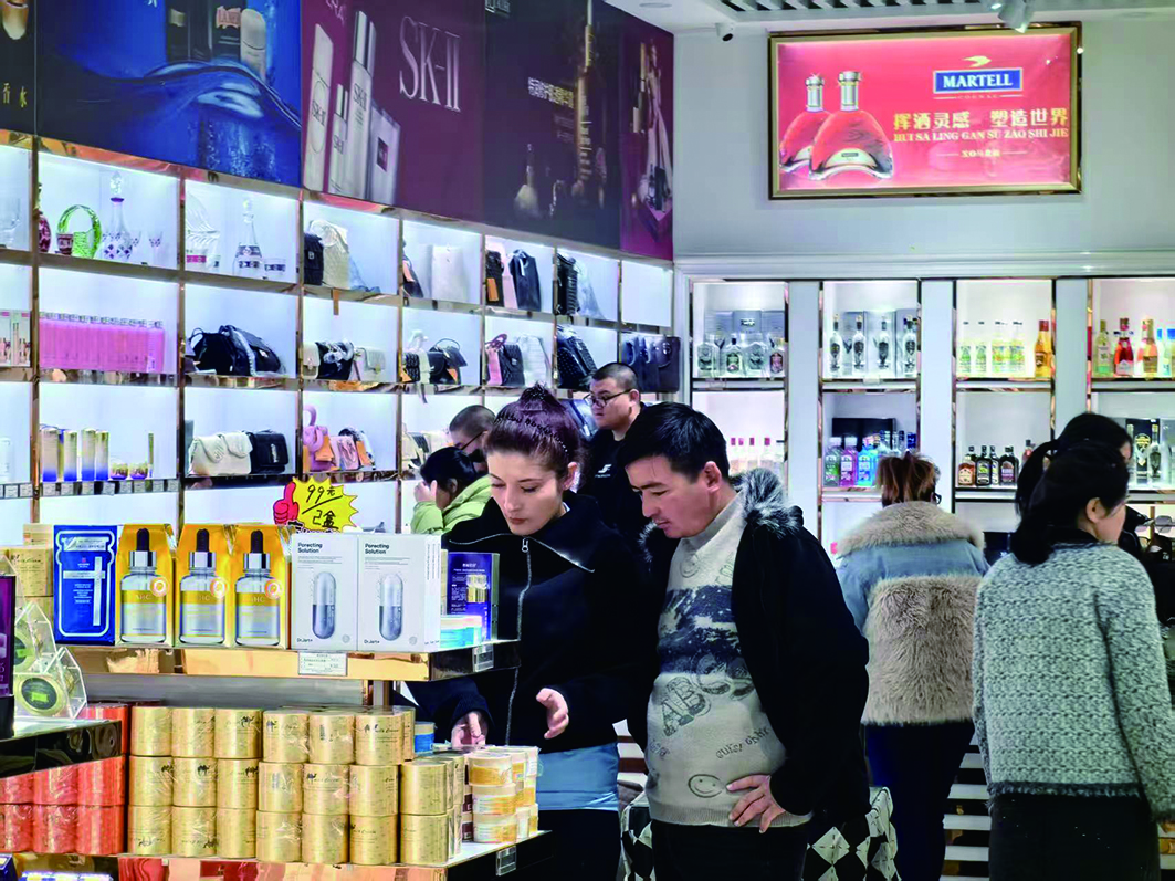 游客在中哈霍尔果斯国际边境合作中心免税店购物。董智杰供图
