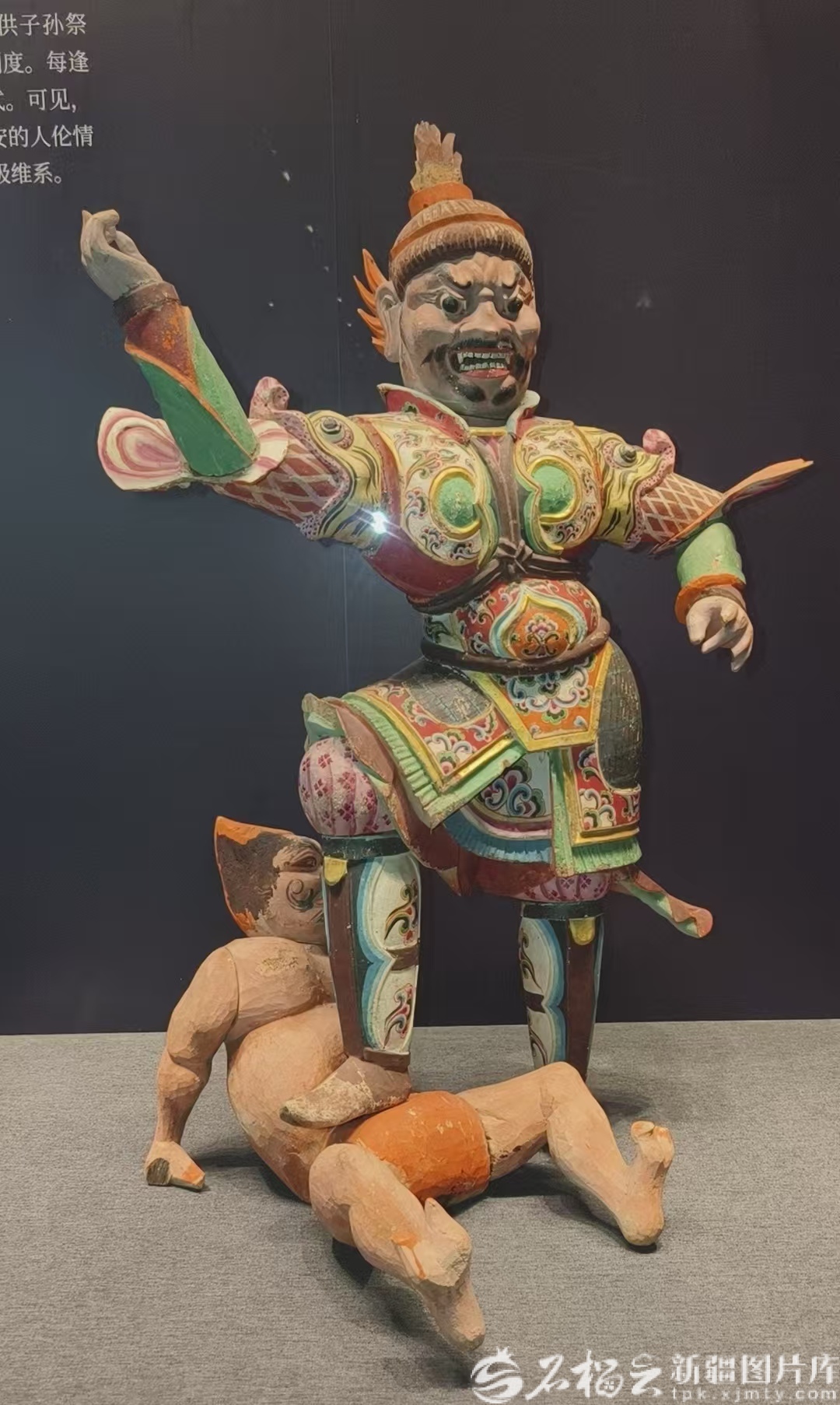 唐代彩绘天王踏鬼木俑。石榴云/新疆日报记者 王新红 摄