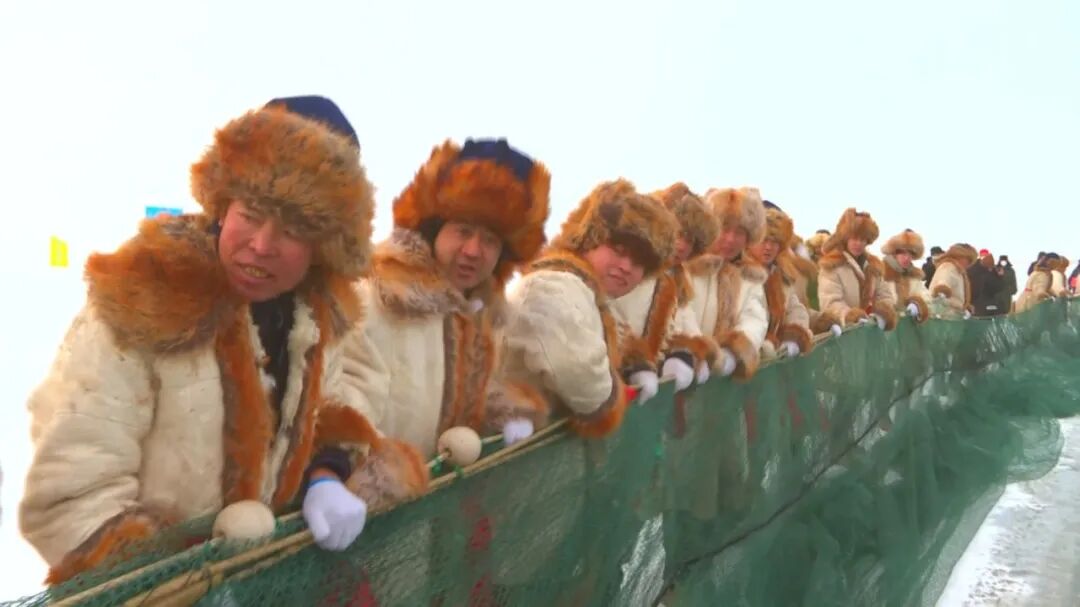 现场,渔工们在“鱼把头”的带领下,庄重地复刻着传统冬捕的完整流程。