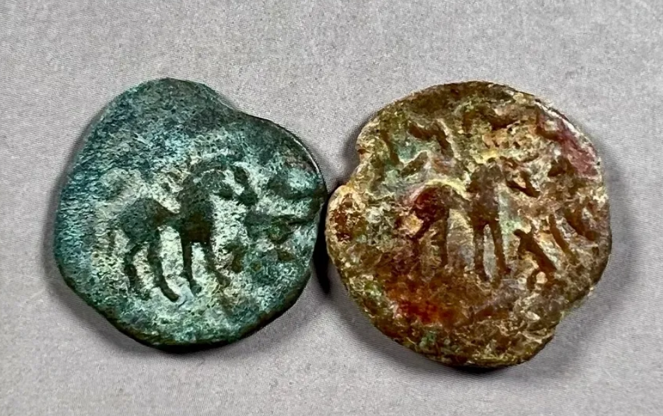 和田地区博物馆馆藏的“汉佉二体钱”。和田地区博物馆资料图