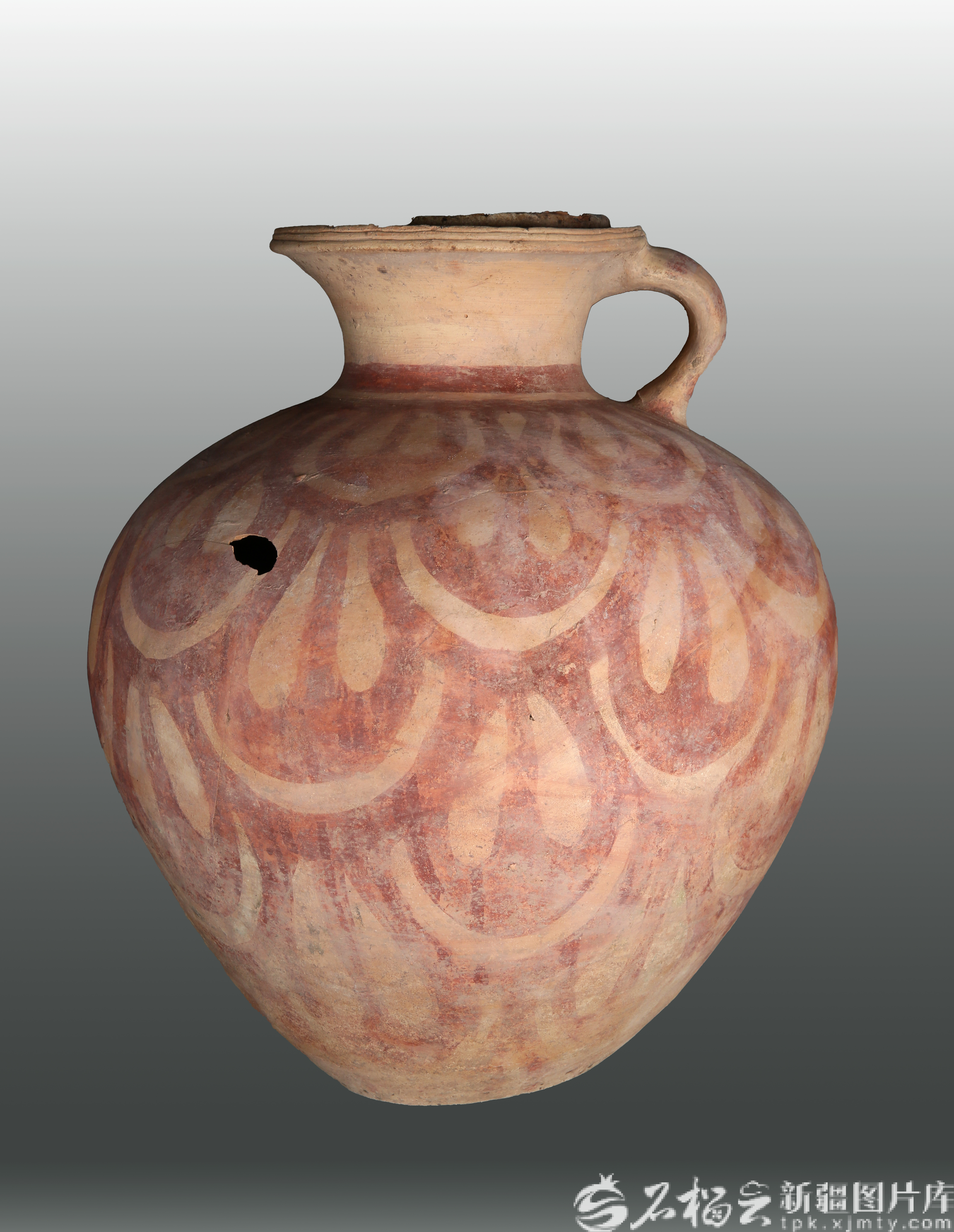 彩绘莲瓣纹陶罐。新疆文物考古研究所供图