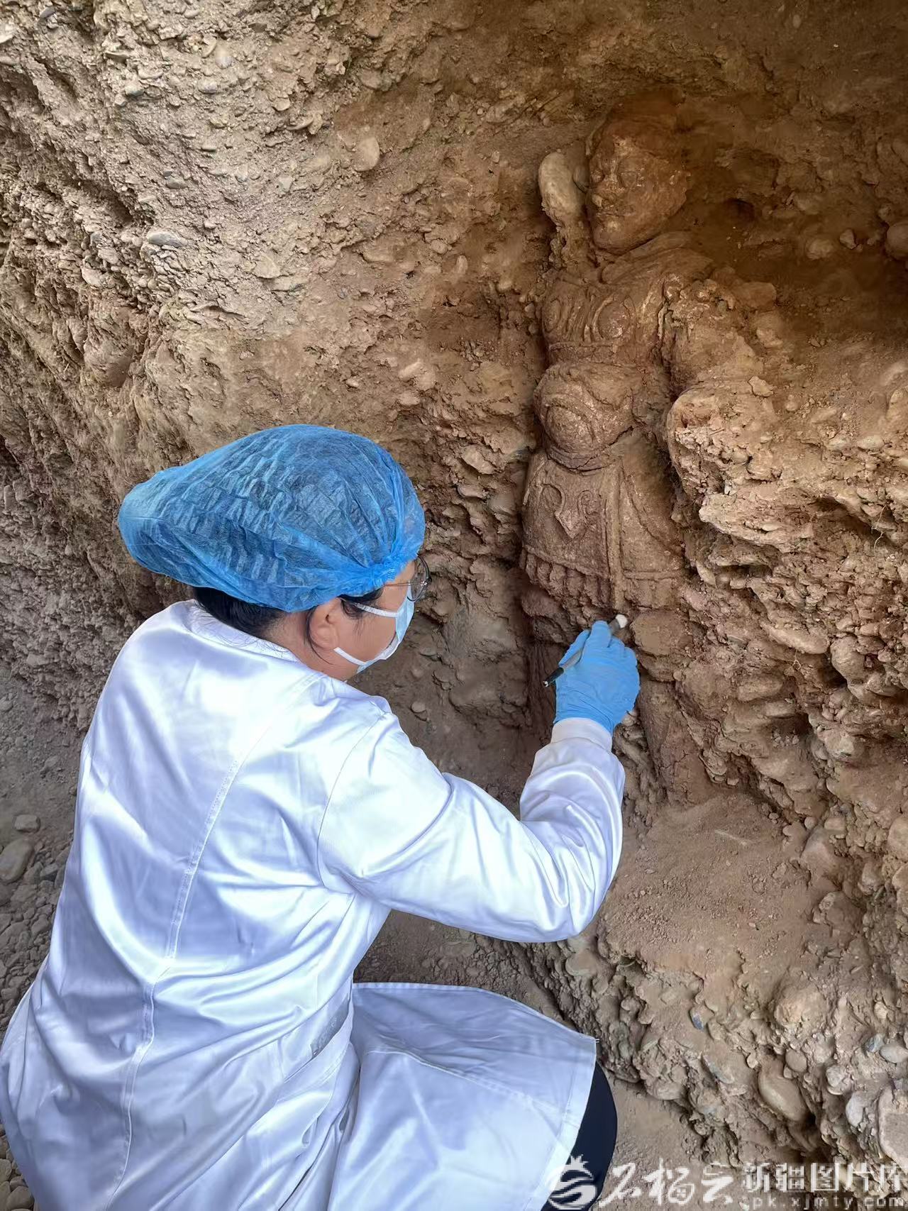 2025年9月5日,考古人员在库车市友谊路墓群发掘区发现一座砖室墓,先通过墓中武士泥俑、开元通宝币等,判断这是唐代高等级墓葬,而后通过刻有“唐故四镇支度判官侍御史尹公墓志铭”字样的方形墓志盖及墓志中可识读出的686字,确定墓主人是曾任唐安西都护府副都护的尹公。