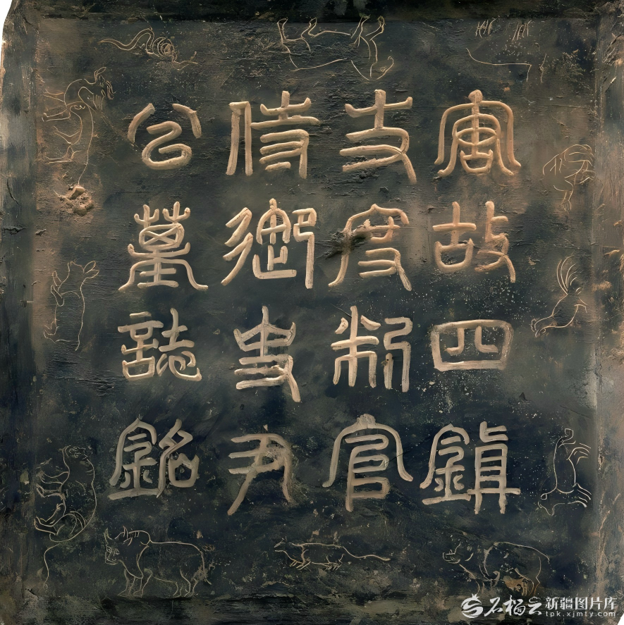组合中,木榻上摆放着案几、木盘、笔架与陶质箕形砚。其形制与北齐《校书图》中所绘木榻极为相似。木棺底座四周设有十二个壸(音kǔn)门(一种源自佛教建筑的设计样式),门内绘有带翼神兽——翼马、翼狮、翼虎,笔触细腻、勾勒如生、设色大胆、挥洒淋漓,神兽形态栩栩如生,充满威严力量。这些图案生动体现了古人对于身后归属的观念。