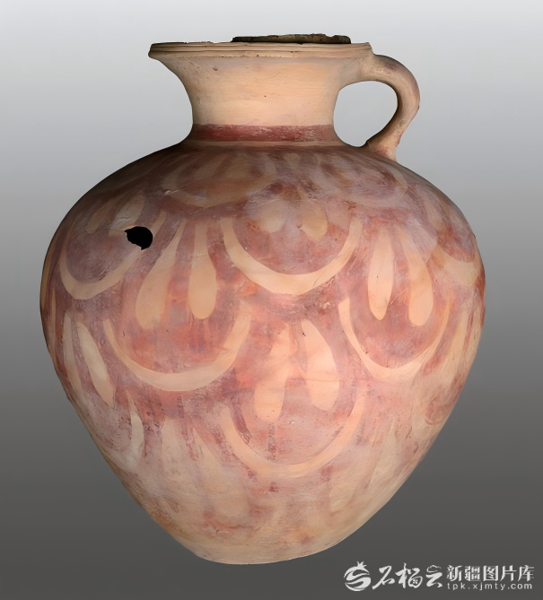 库车市友谊路墓群出土彩绘莲瓣纹陶罐。新疆文物考古研究所提供