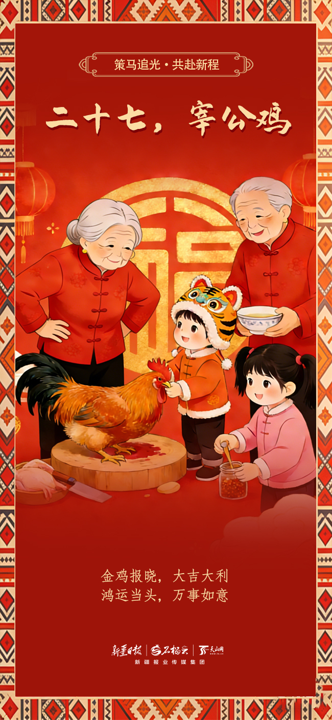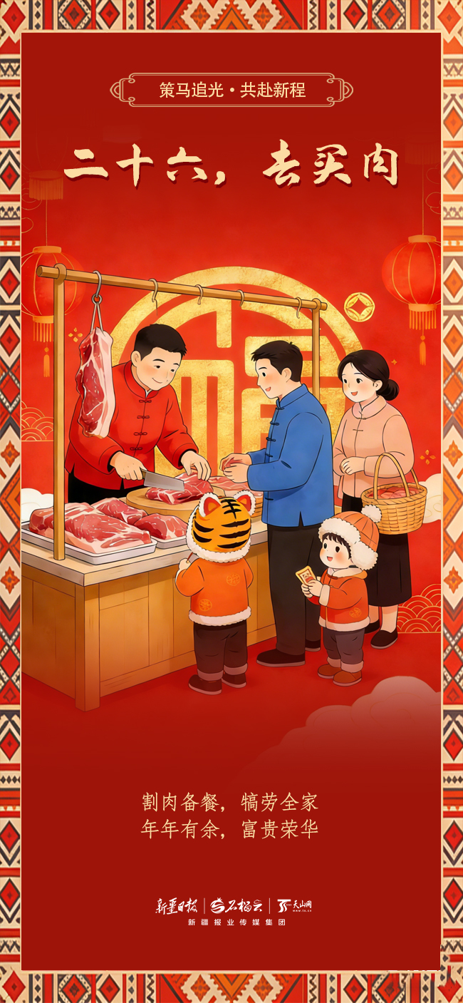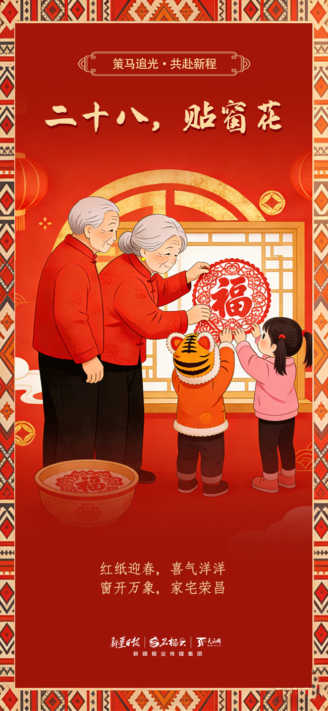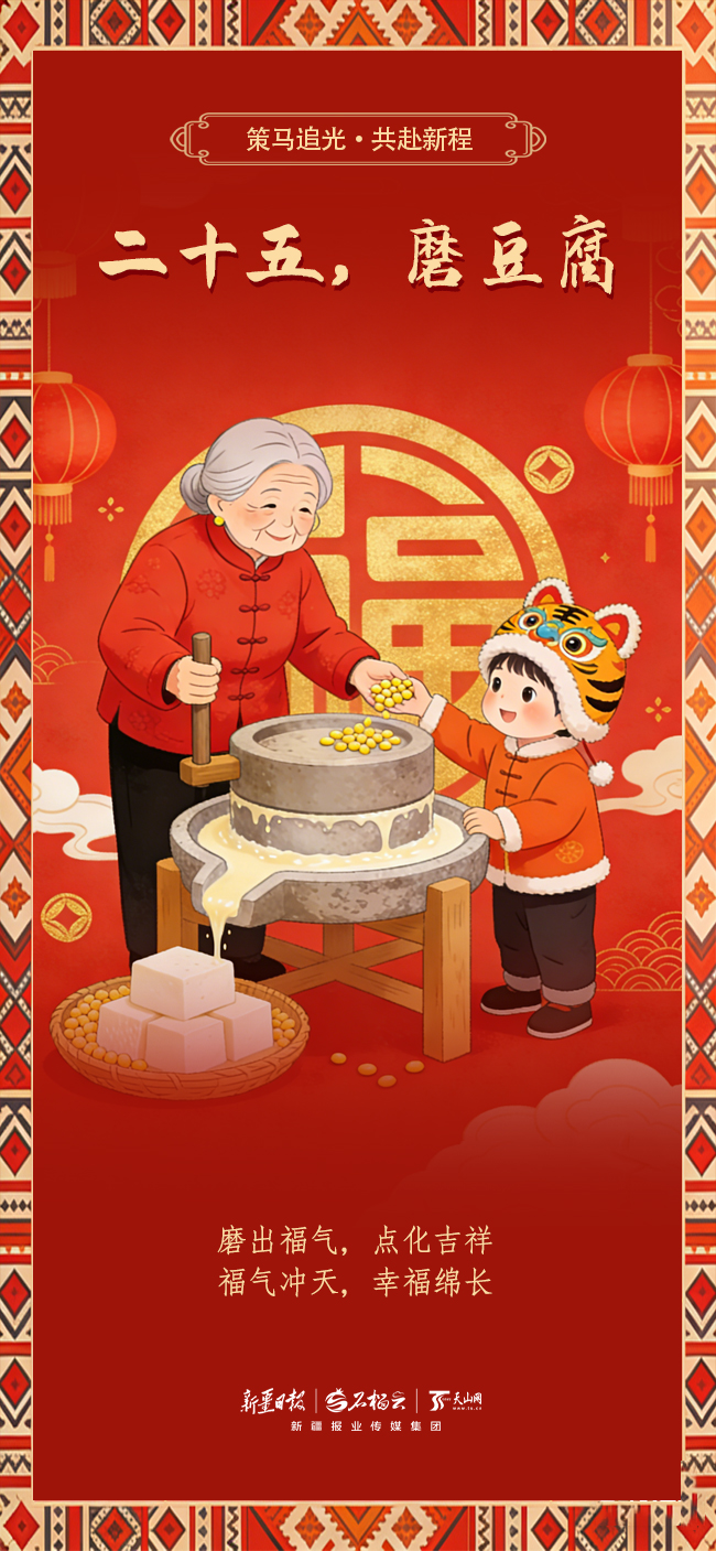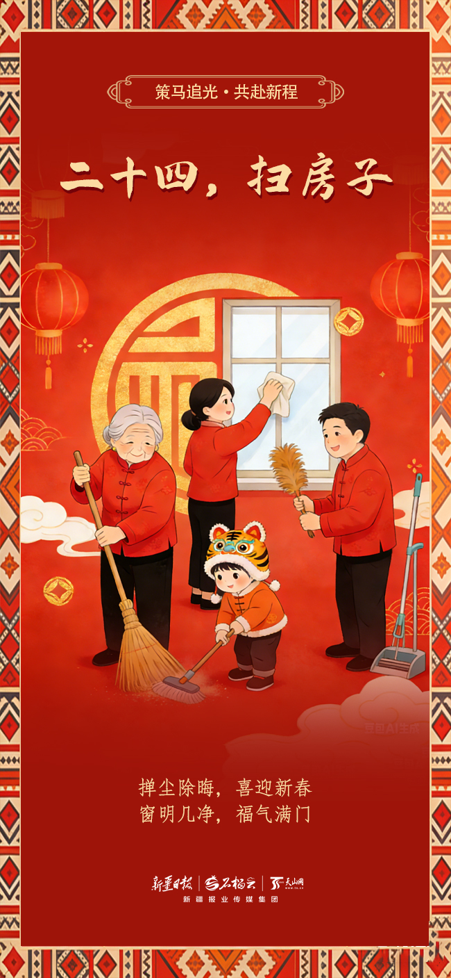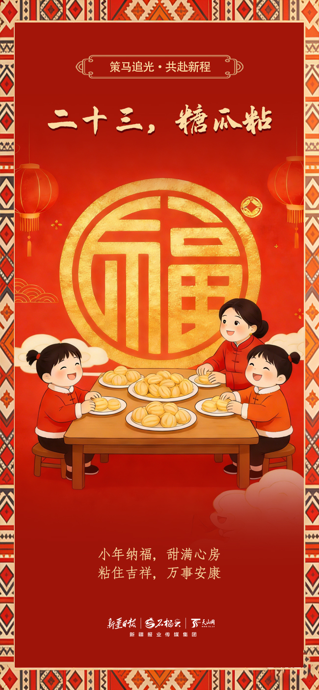 年俗流转,是刻在骨子里的年味,更是藏在岁月里的欢喜。从腊月二十三的甜蜜序曲,到除夕夜的团圆高潮,关于过年的那些温暖准备,你是否依然珍藏于心?天山网精心备好一组年俗海报,邀你一同重温这些幸福的仪式,让年味回归,让期待满格!