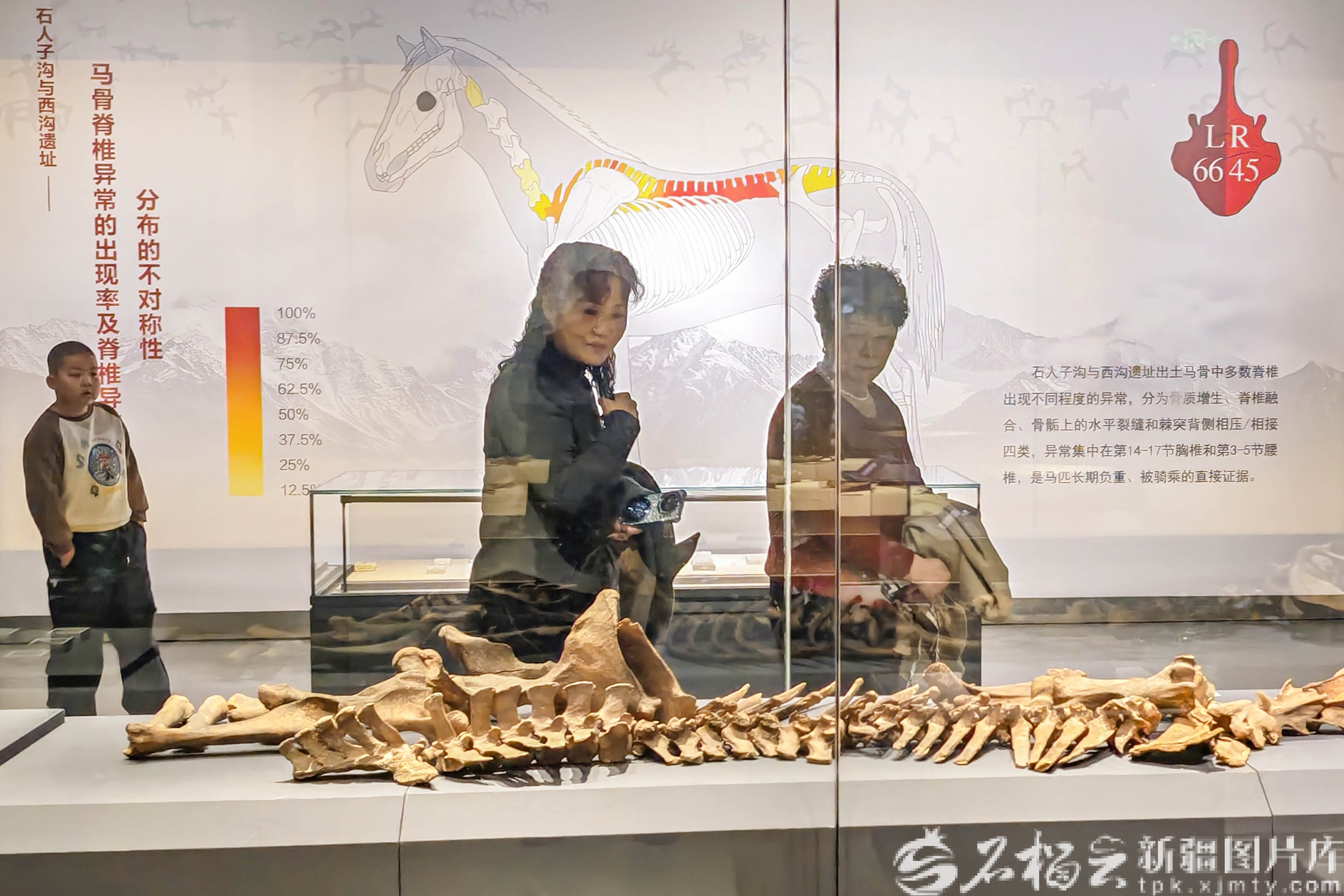 2月18日,游客在哈密市博物馆《驭马天山——哈密与马的千年之约》展厅参观。