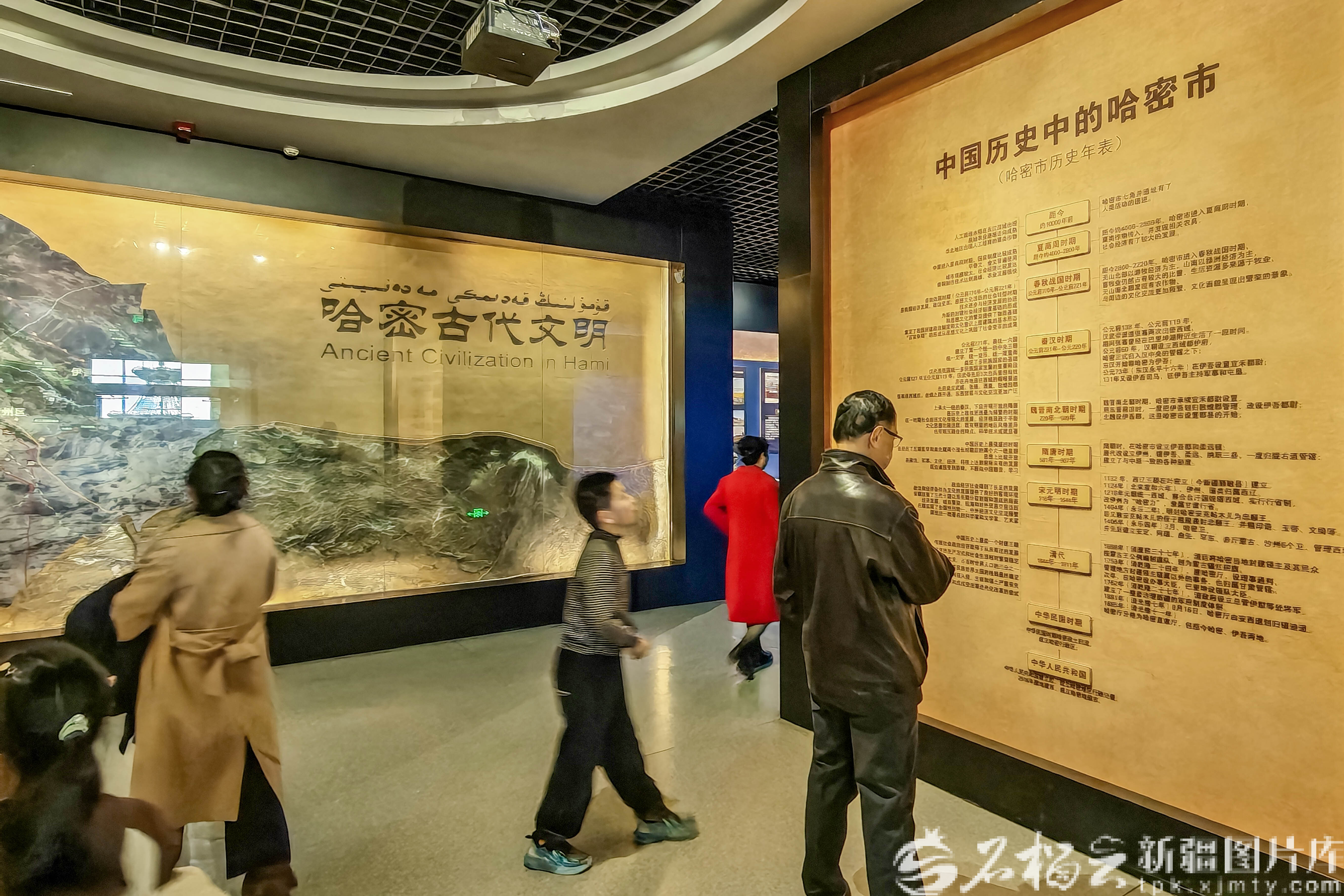 2月18日,游客在哈密市博物馆古代文明展厅参观。