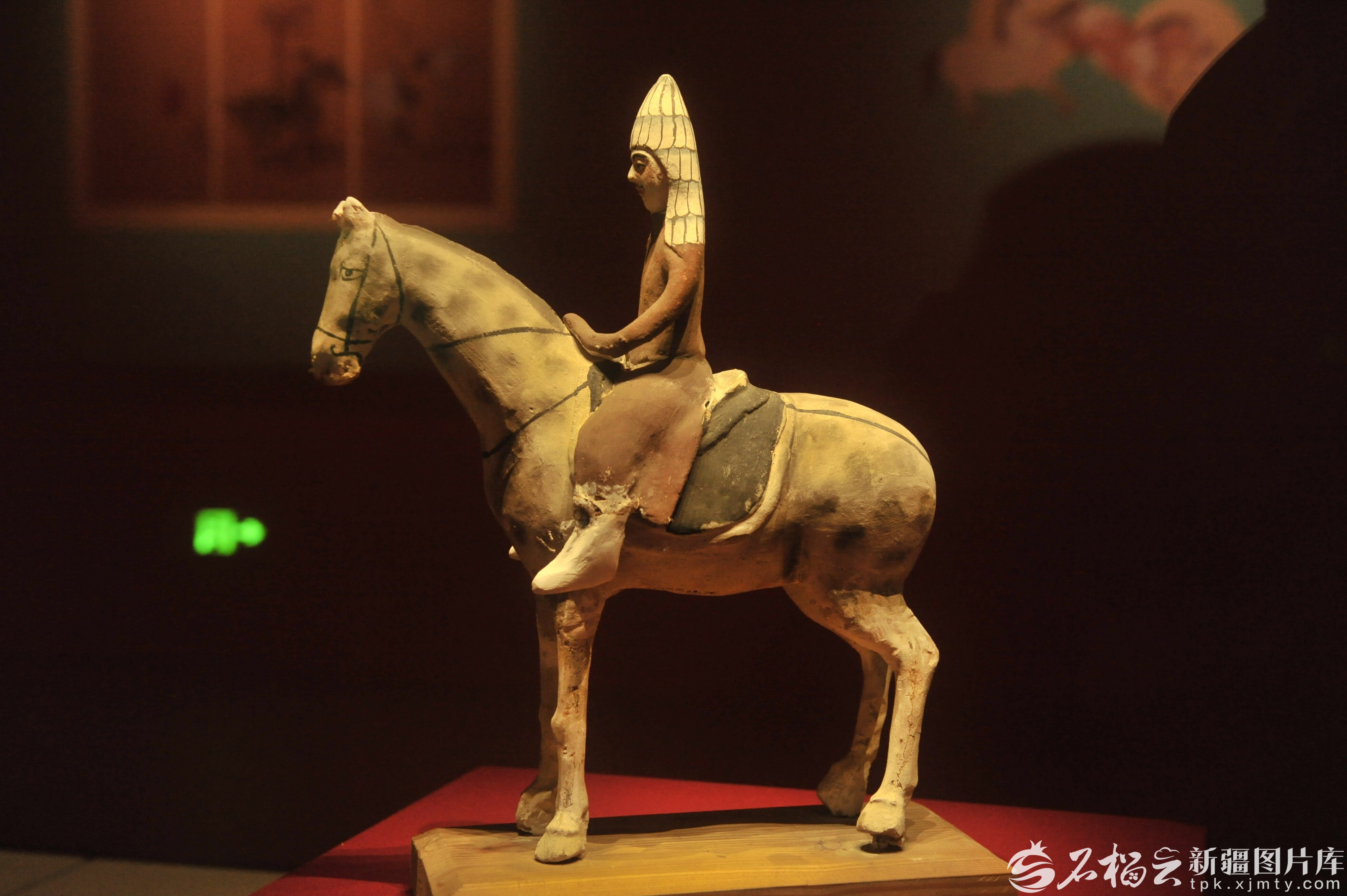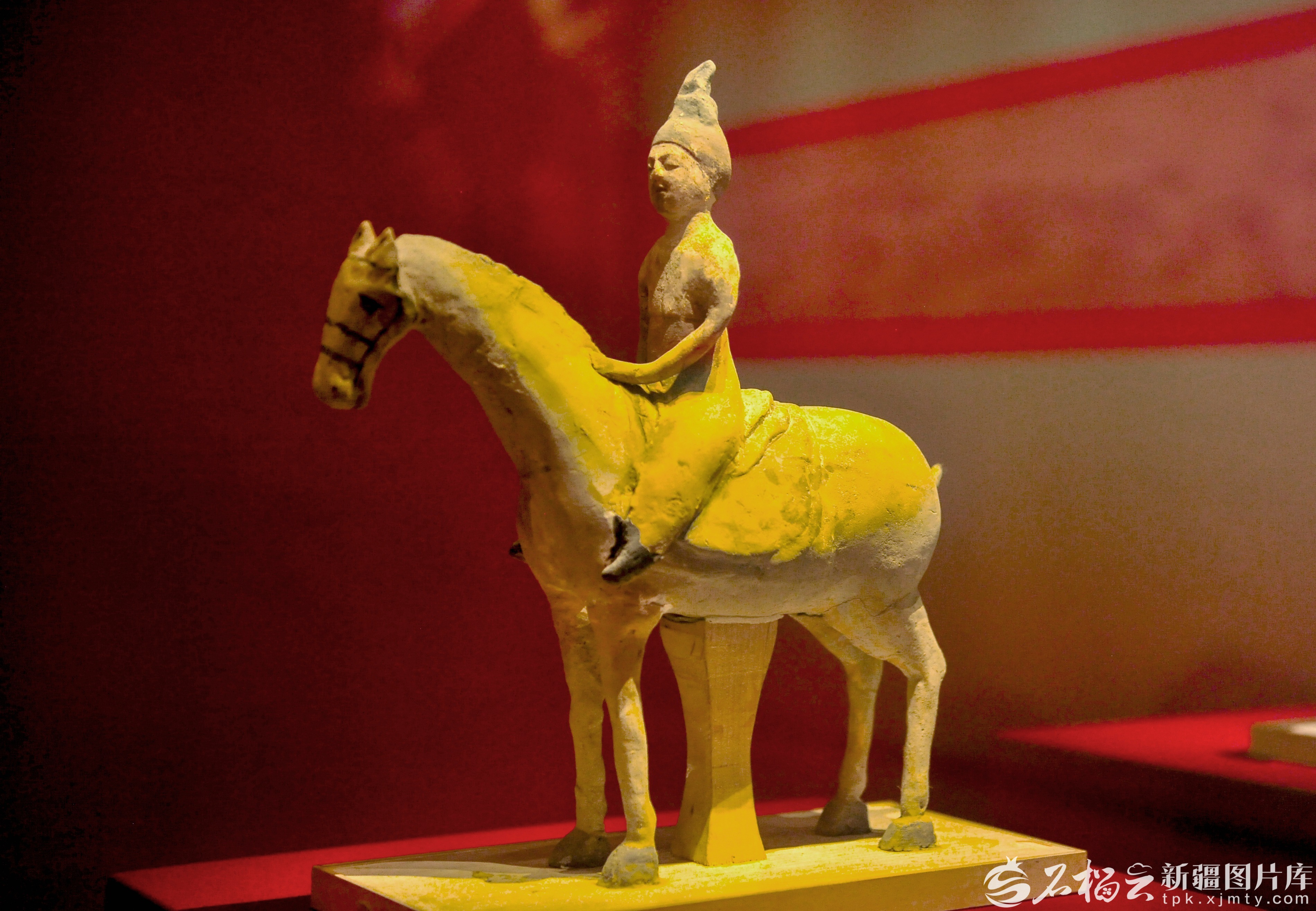 唐代彩绘骑马女俑,出土于吐鲁番阿斯塔那墓葬,现收藏于新疆博物馆。