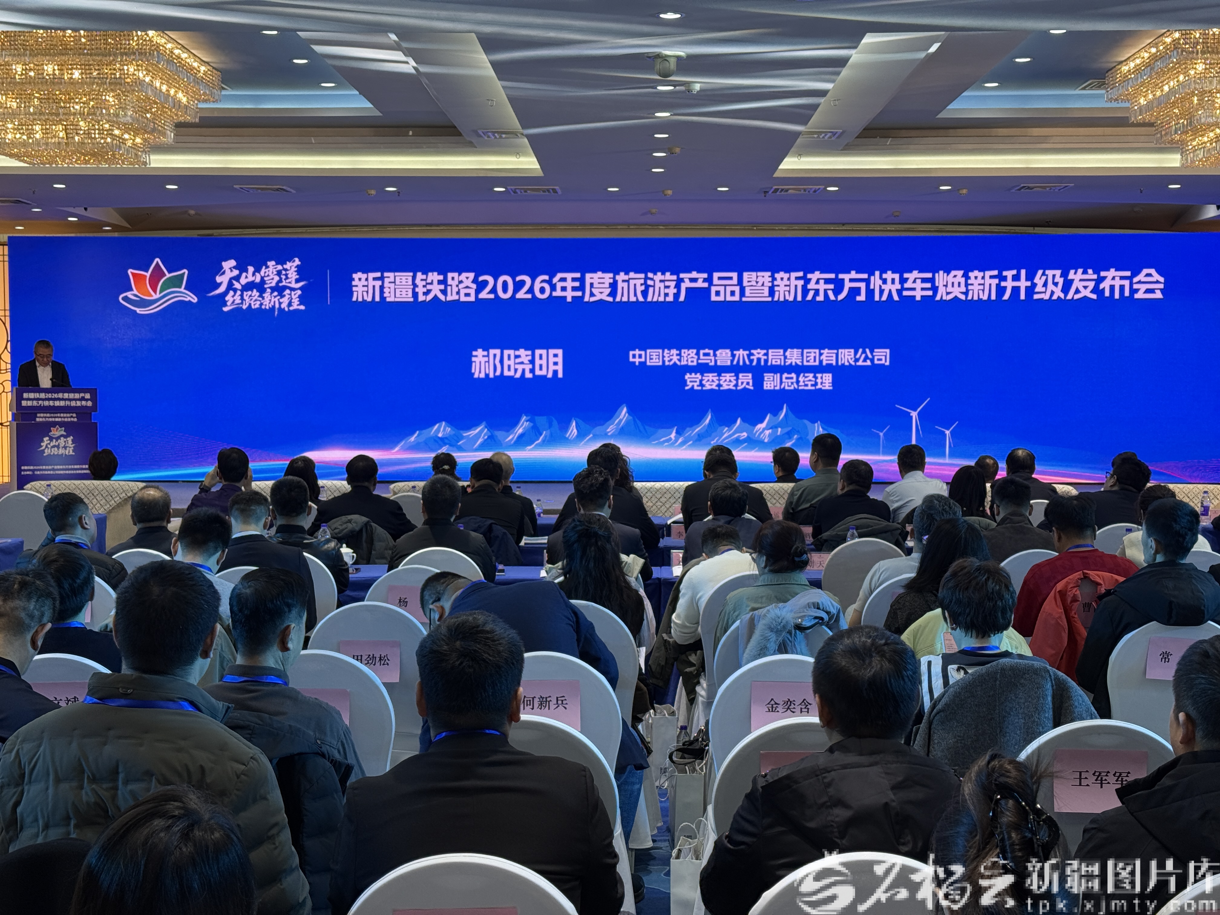 3月18日,新疆铁路部门举办“天山雪莲·丝路新程——新疆铁路2026年度旅游产品暨新东方快车焕新升级”发布会。图/中国铁路乌鲁木齐局集团有限公司提供