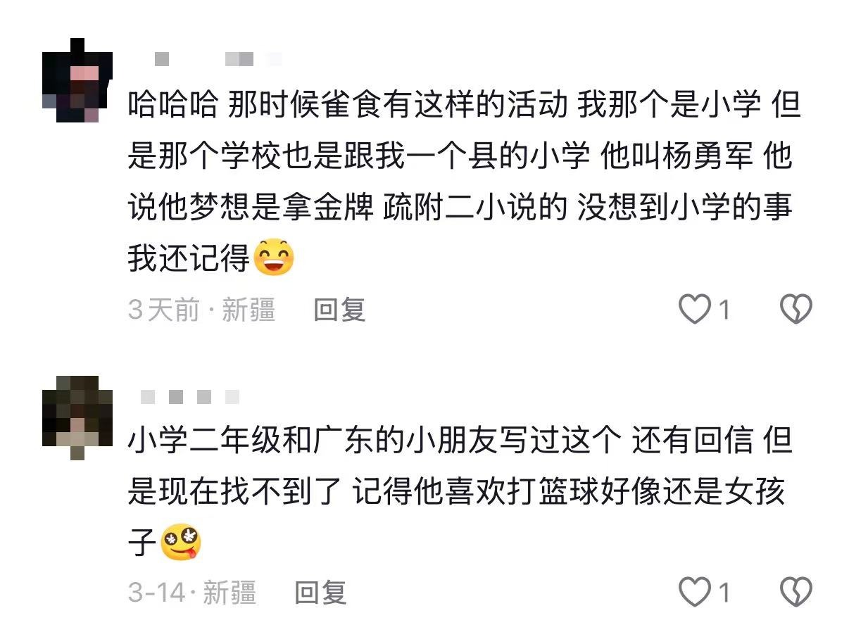 有广东网友回忆,为了给远方的新疆笔友介绍家乡的美食,会特意去逛一圈集市,把那种气味和热闹写在纸上;也有新疆的网友分享,为了给外省的朋友描述那拉提草原,会绞尽脑汁地遣词造句,恨不得把蓝天白云都装进信封里。