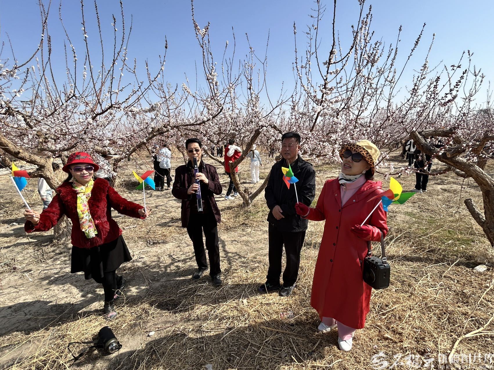 3月20日,游客在杏花树下唱歌。石榴云/新疆日报记者 张小宓摄