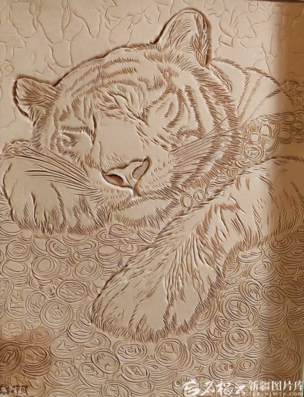 胡乃毓雕刻的“虎”主题皮雕作品。受访者供图