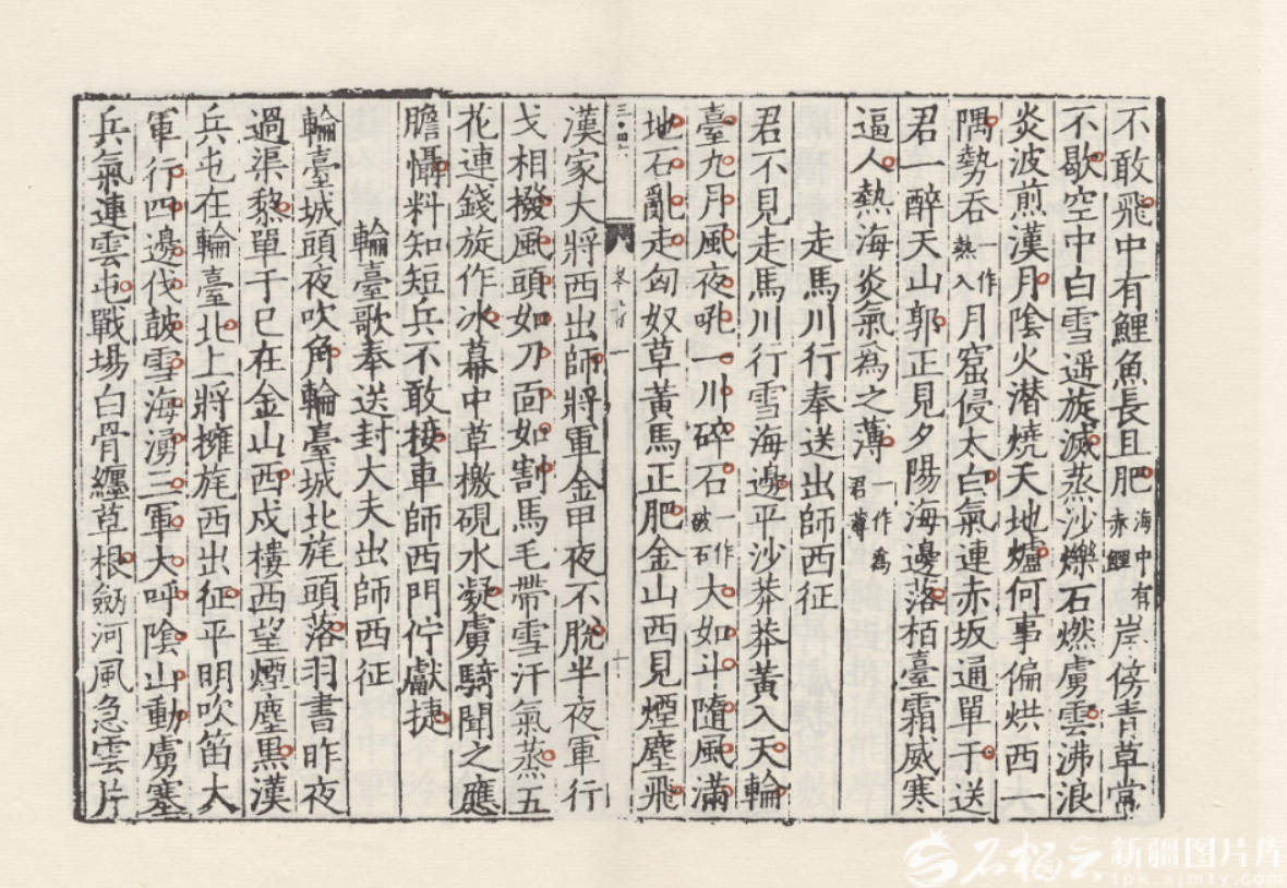 宋刻本《岑嘉州诗》(《走马川行奉送出师西征》)