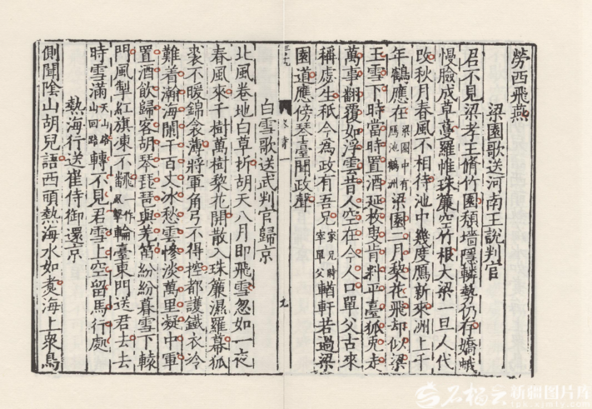宋刻本《岑嘉州诗》(《白雪歌送武判官归京》)