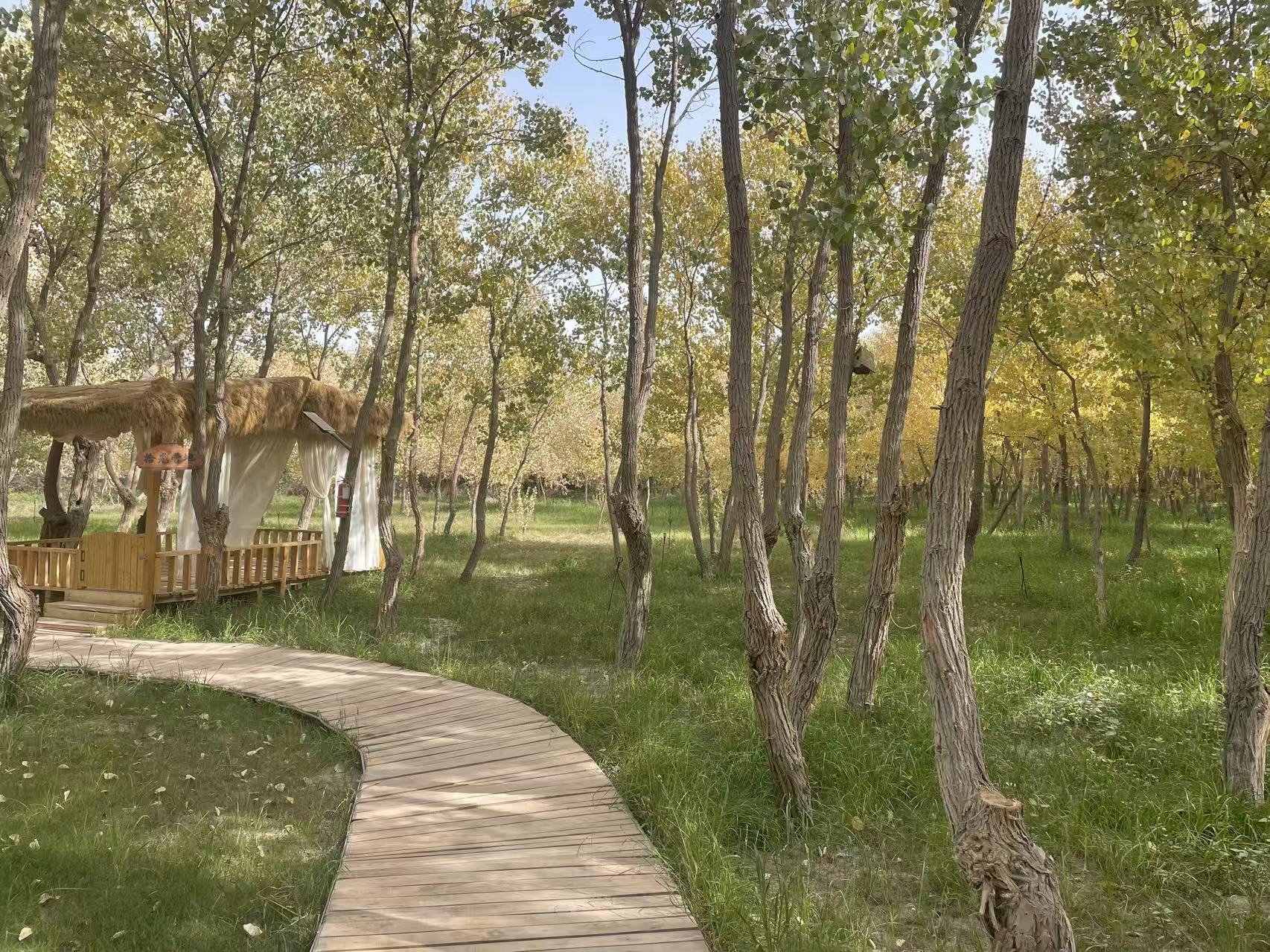 生态旅游项目则充分依托沙漠独特的景观特色,利用金色沙丘连绵起伏、与湛蓝天空相映成趣的自然景致,打造了专属沙漠体验区,让游客亲身感受大漠的雄浑与壮美。此外,公园还配套设置了彩虹滑道、林间木栈道、儿童游乐设施、休闲座椅及餐饮服务等多样化娱乐休闲项目,全方位满足不同年龄段、不同需求的游客。