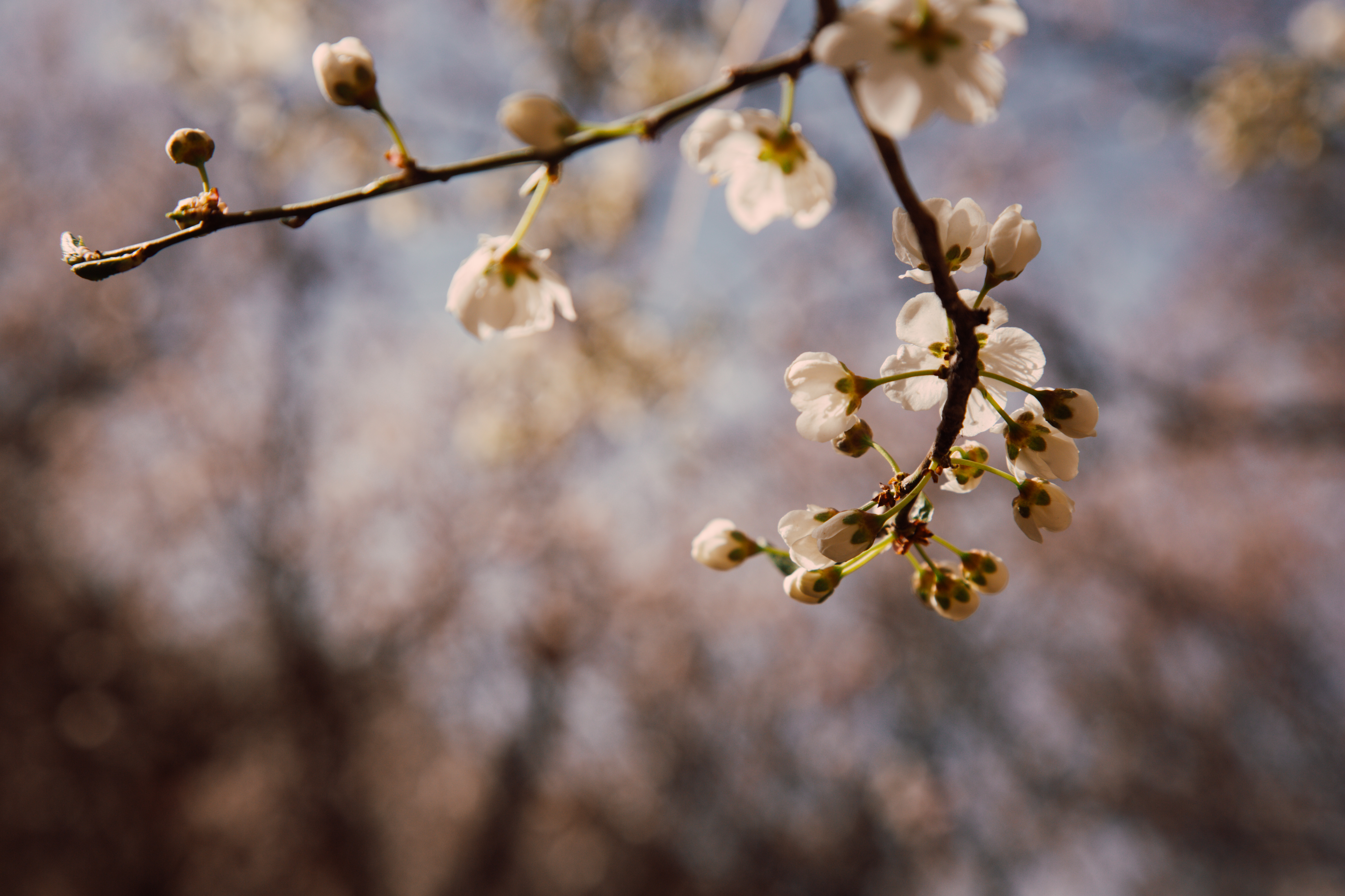 粉白色的杏花争相开放。