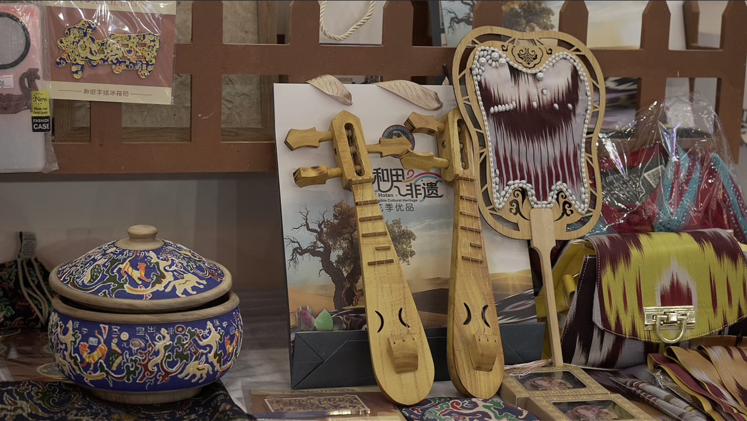 和田地区“世界玉都·中国和田”文旅主题展馆陈列的非遗文创产品。柴旭东 摄