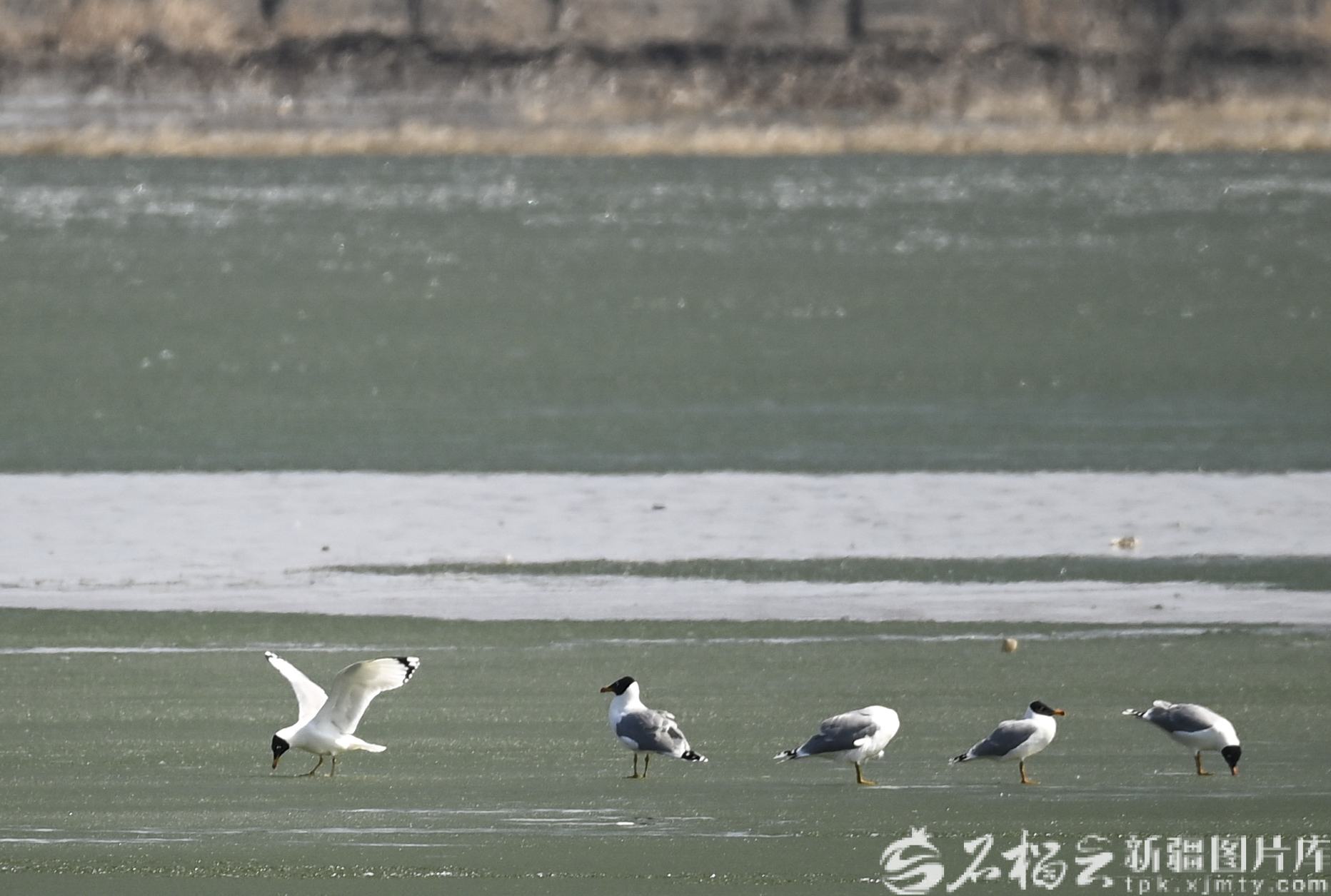 4月1日,渔鸥在位于乌鲁木齐市米东区的塔桥湾水库栖息。