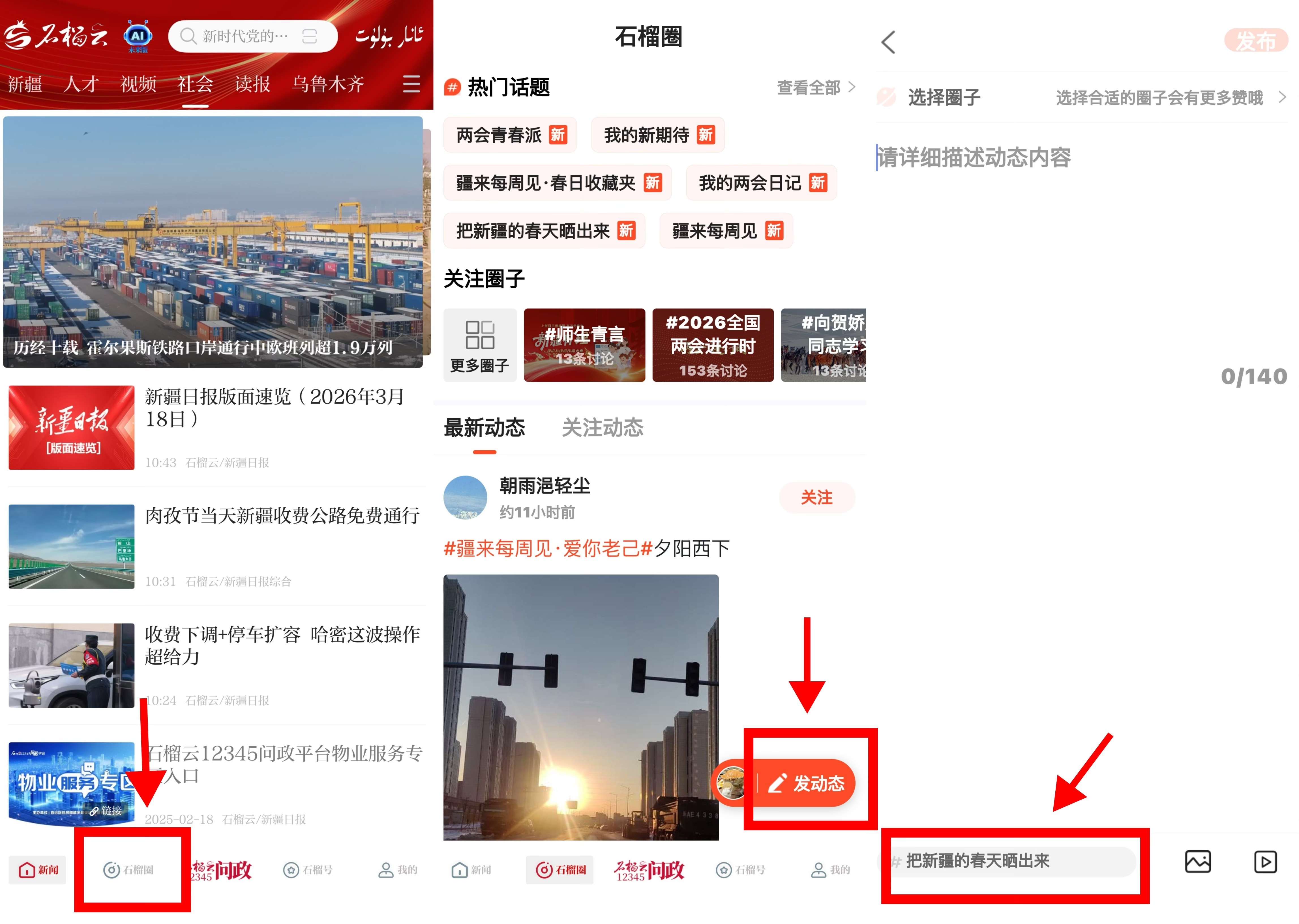 石榴圈发布流程截图。