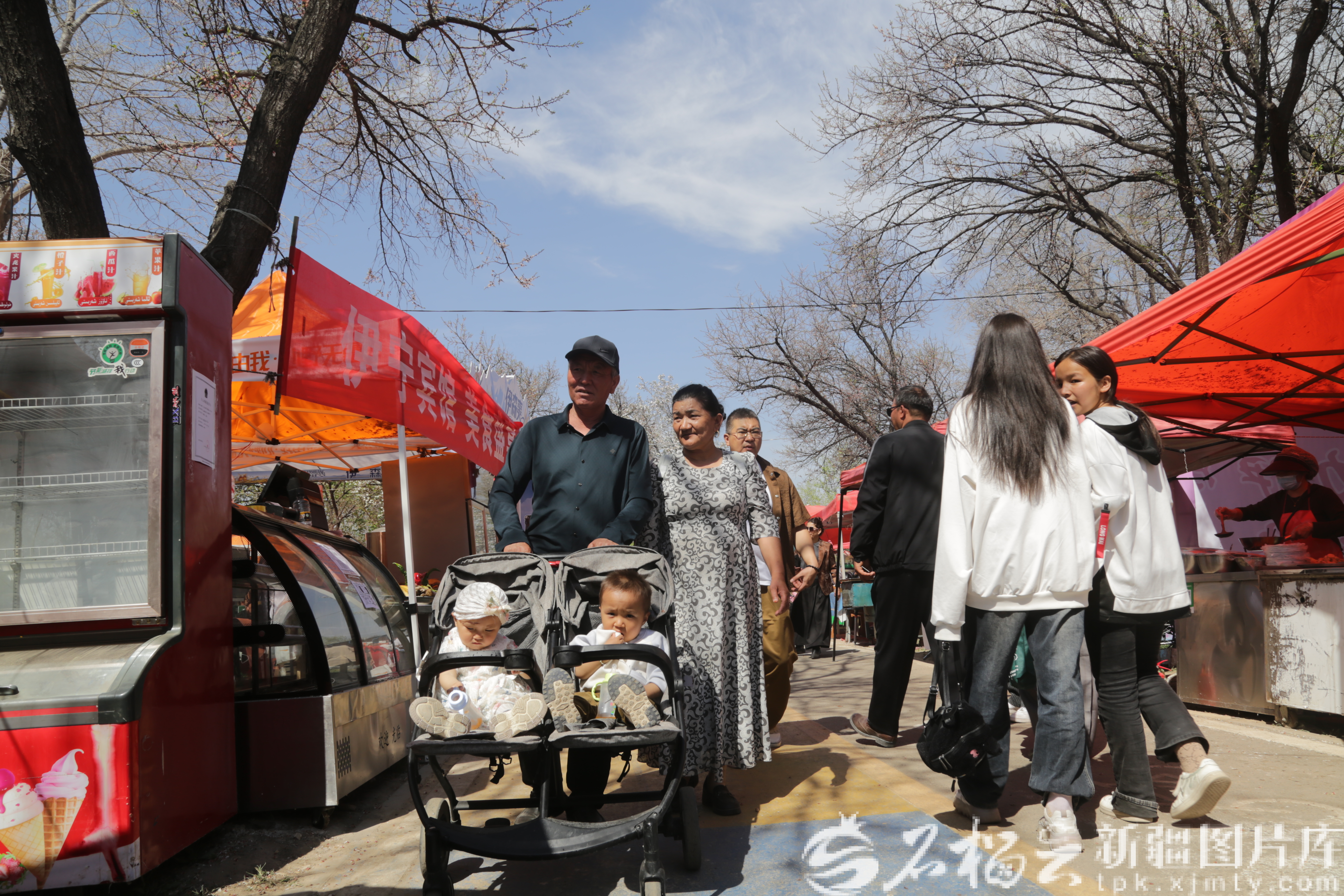 4月4日,伊宁县第十五届杏花文化旅游季暨“魅力伊宁 和美杏乡”春季文化旅游推广活动启幕。图为当地群众漫步在杏花林特色展位前。石榴云/新疆日报记者 宋卫国摄
