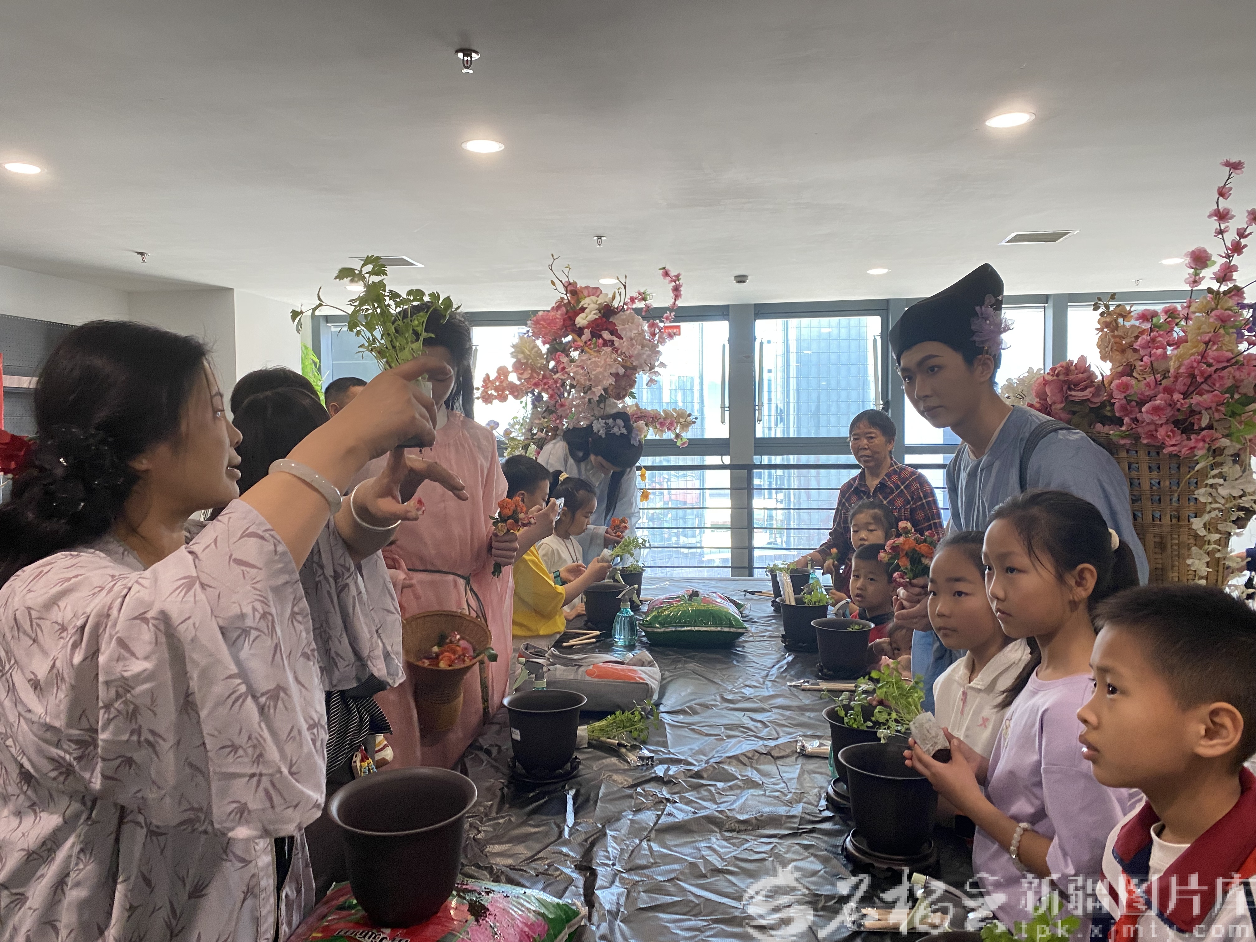老师在指导学生们种植芹菜。天山网-新疆日报记者 赵梅 摄