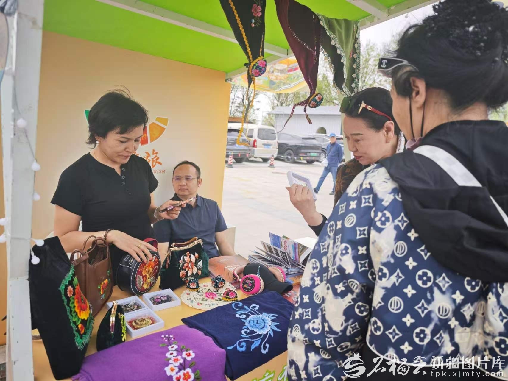 游客了解非遗刺绣产品。石榴云/新疆日报记者 宋海波摄