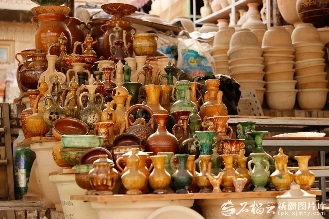 喀什古城景区里国家级非遗代表性项目维吾尔族模制法土陶烧制技艺作品展示。侯立超摄