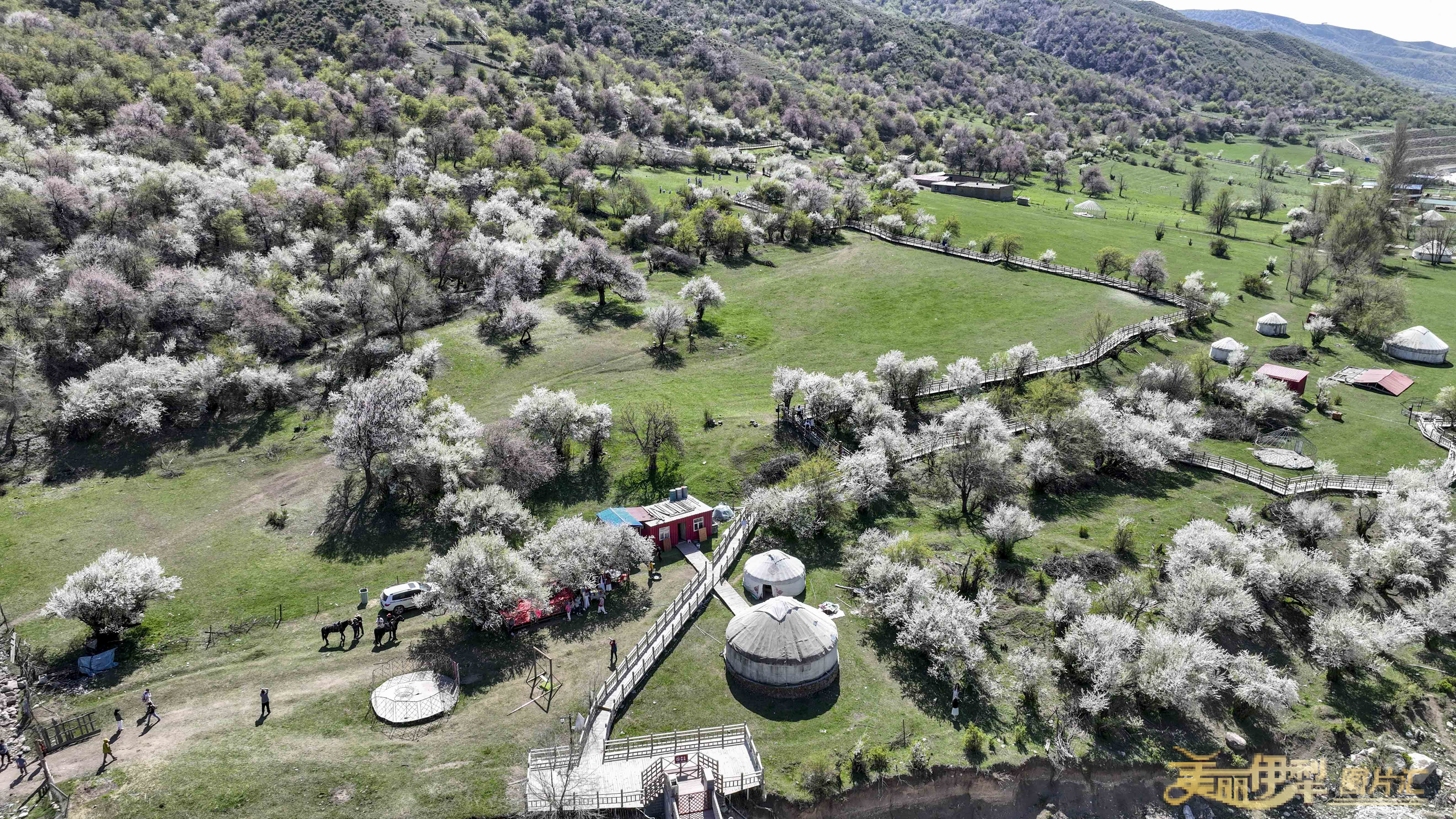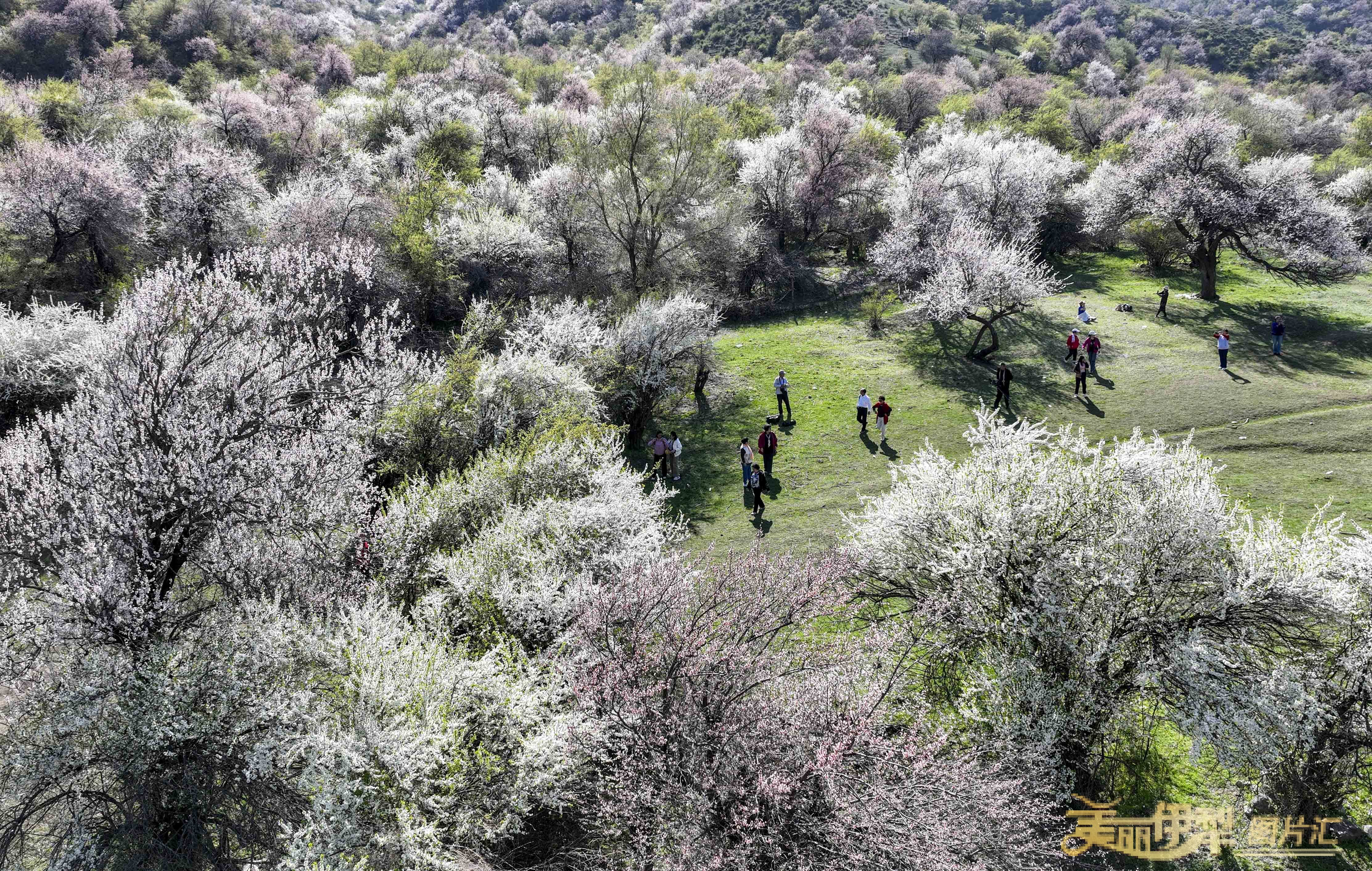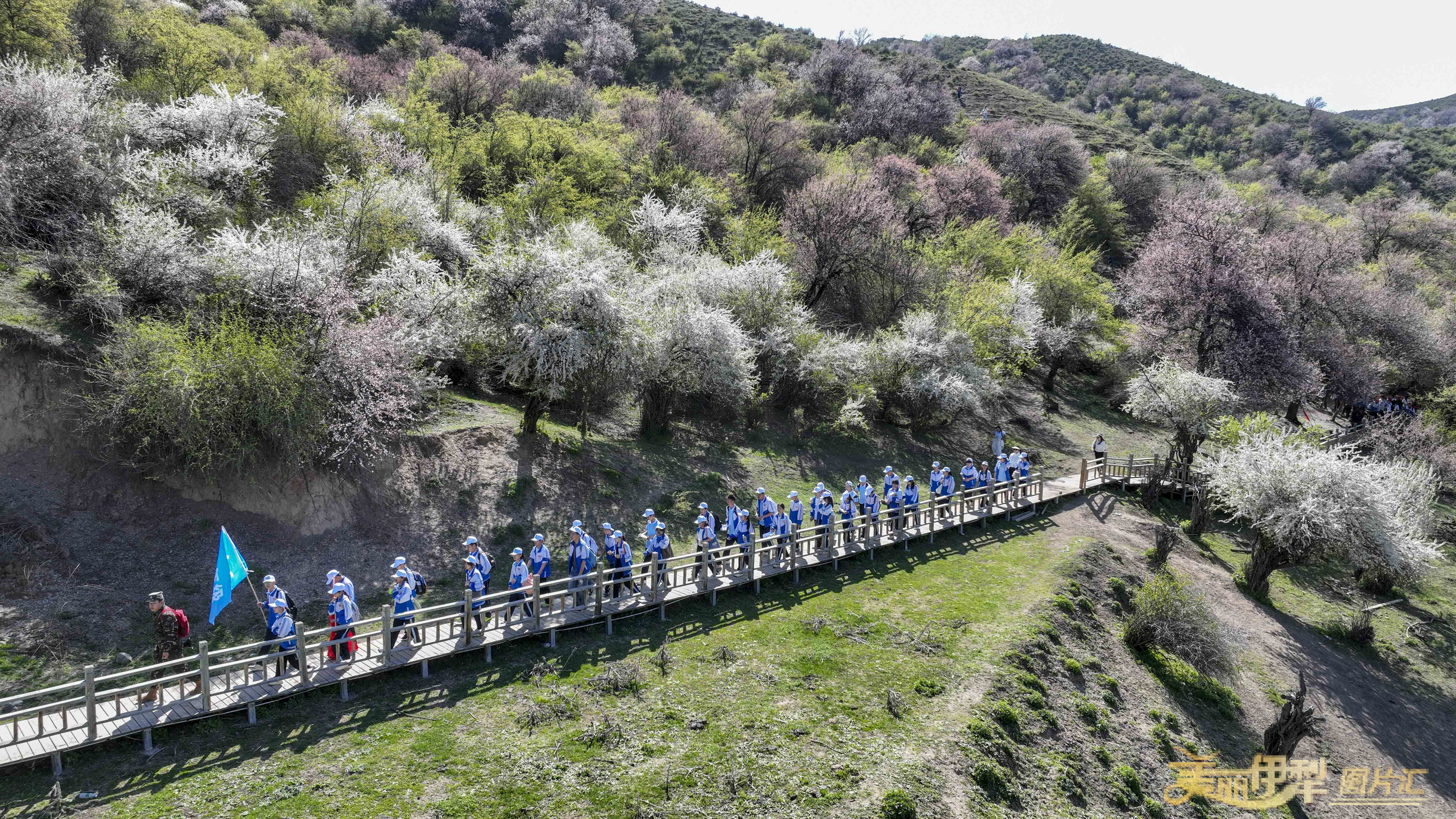 4月11日,霍城县中华福寿山景区漫山遍野的野杏花、野樱桃李花、野苹果花次第绽放,粉白交织、连绵成海,勾勒出一幅壮美的春日画卷。景区美丽的风景吸引各地游客前来踏青赏花,也带动了学生研学热潮。中华福寿山景区成为伊犁河谷春季赏花的热门目的地之一。