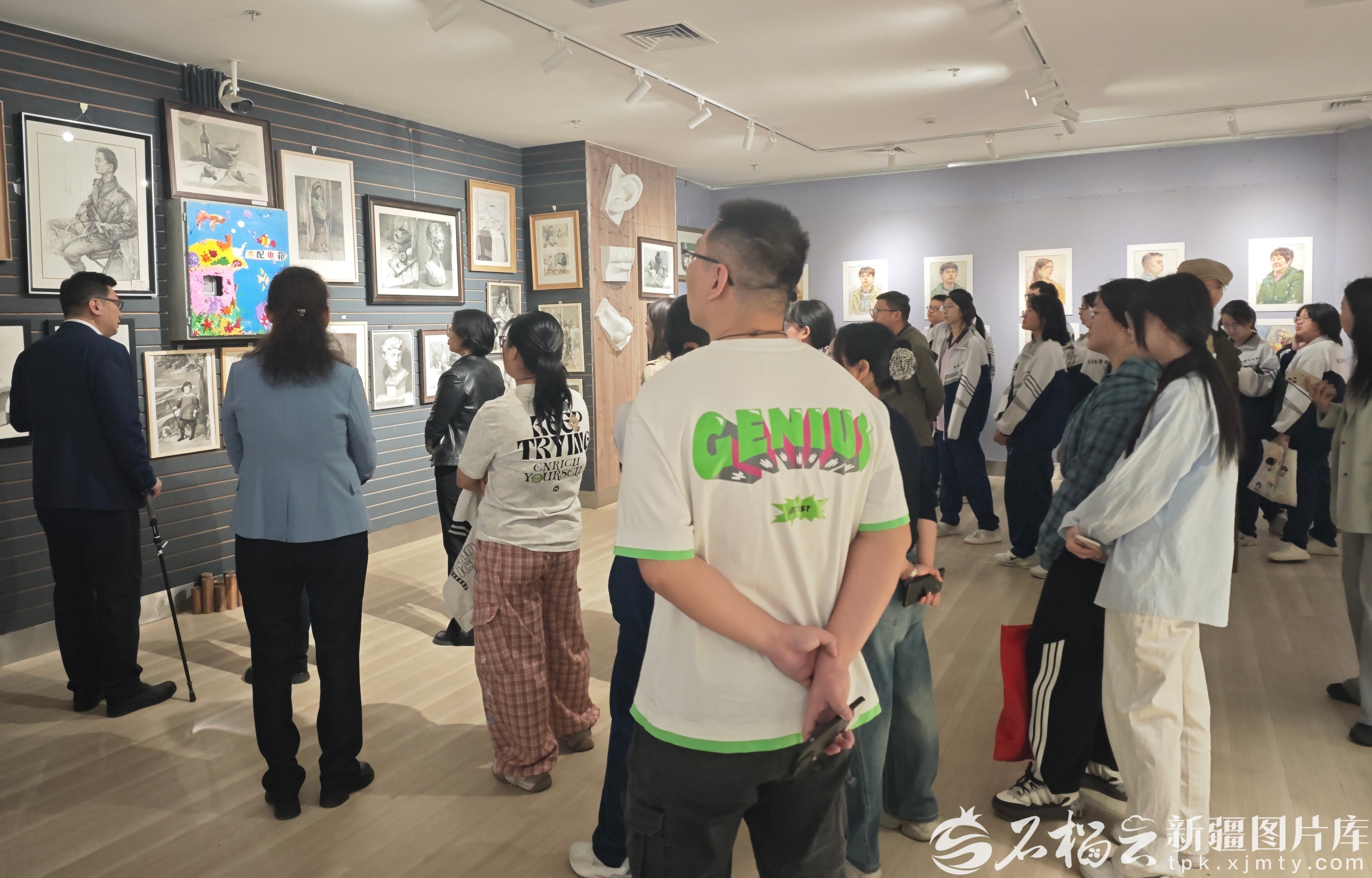观众在新疆青少年当代美术馆观展。石榴云/新疆日报记者 朱成晓摄