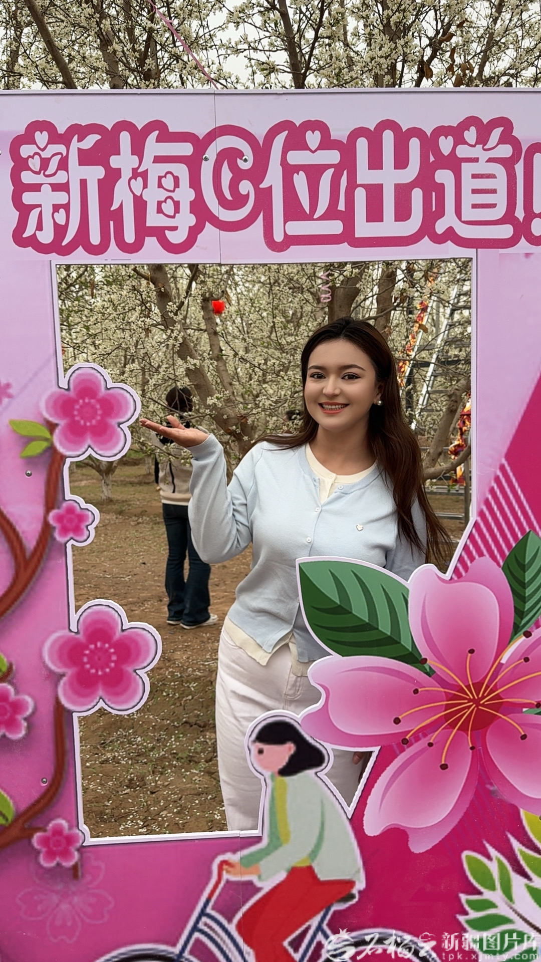“家人们快看!这就是美丽的新梅花海——粉白的花瓣缀满枝头,风一吹就像下花瓣雨,错过了要再等一年。”镜头里,她头戴特色头饰,身着传统服饰,脚步轻快地穿梭在花海中,语气里是藏不住的欢喜。