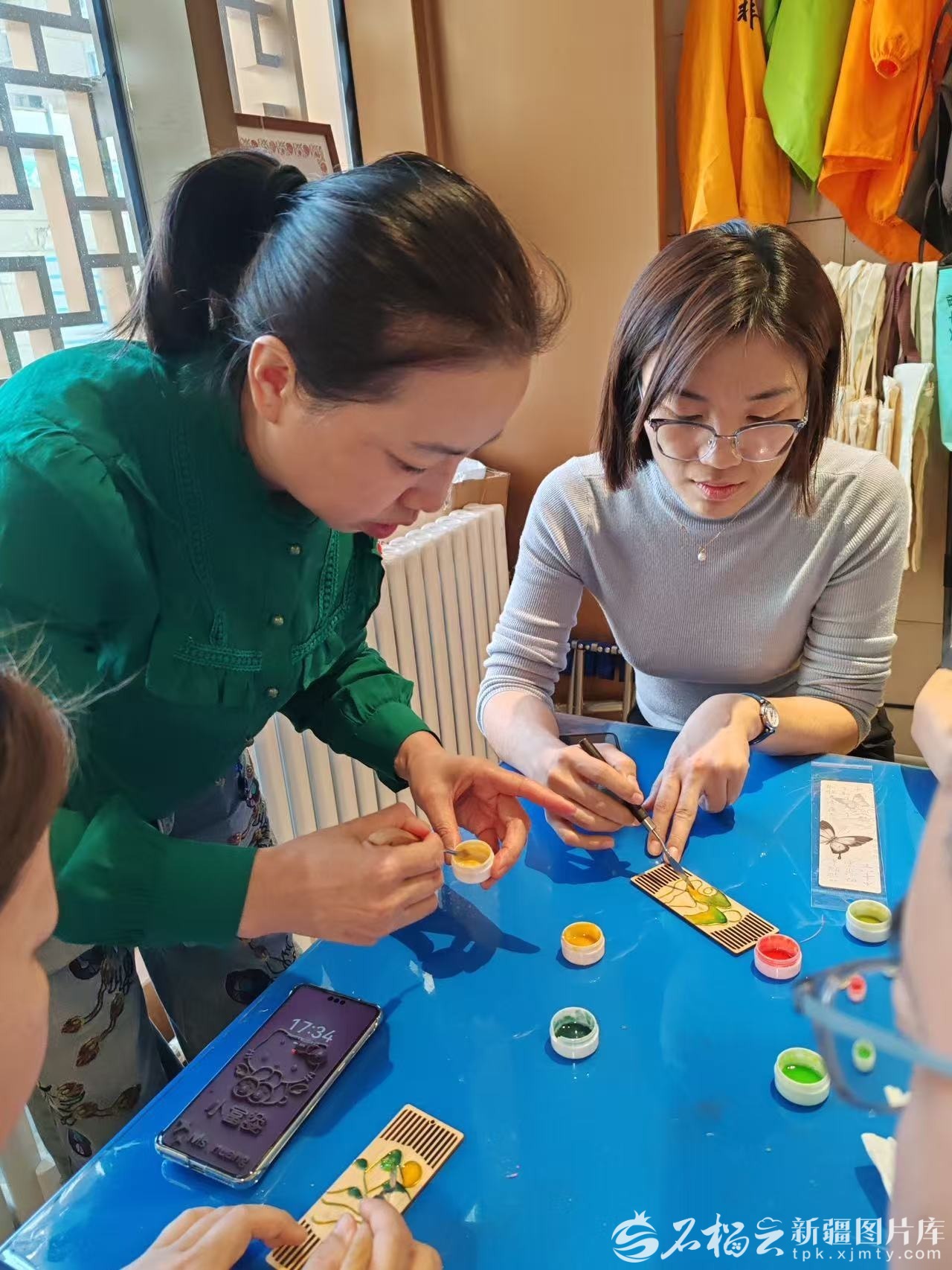 李华(左一)在教授掐丝珐琅技艺。(图片由受访者提供)