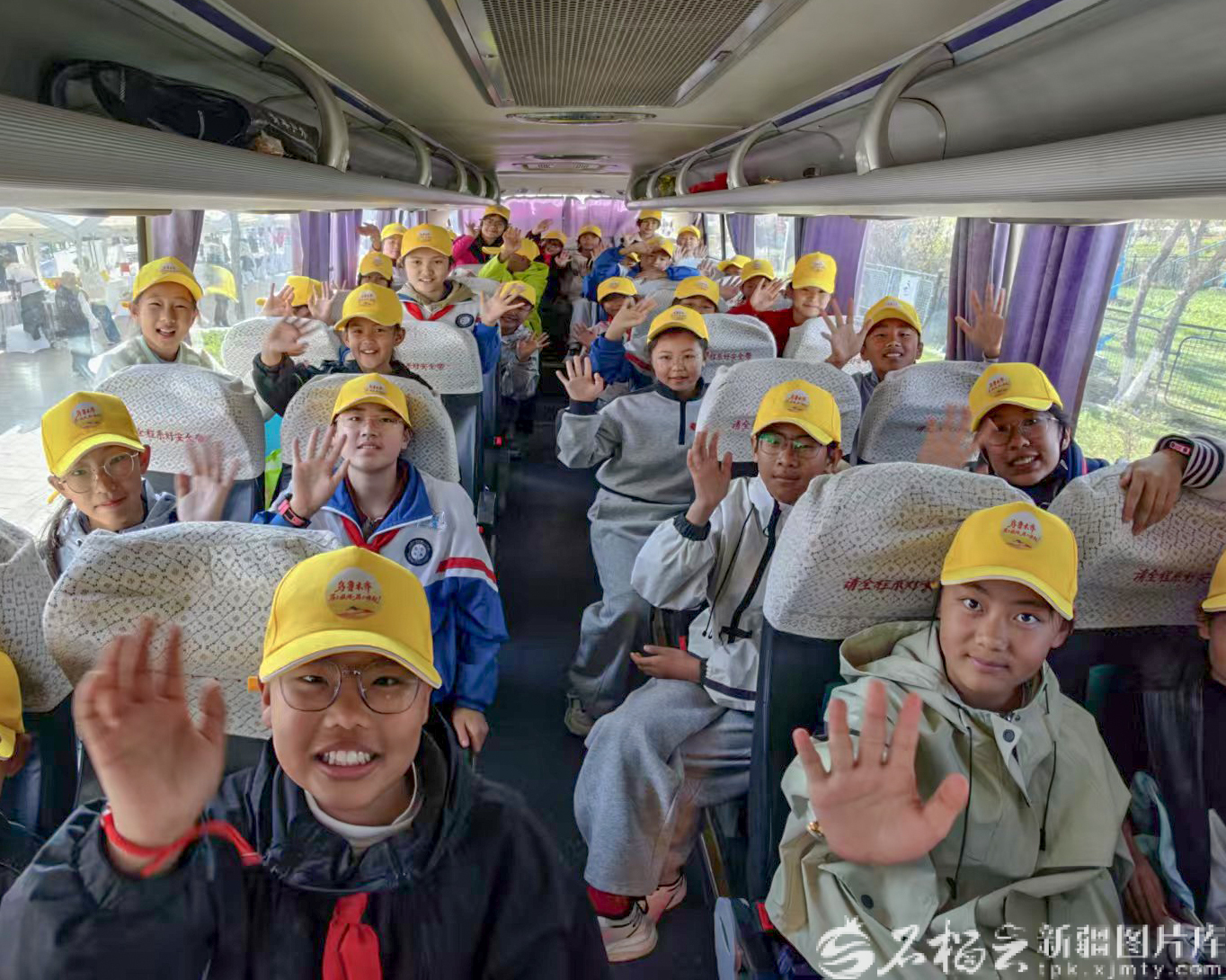 4月19日,参加研学的小学生准备出发。