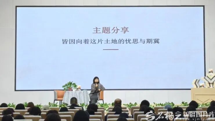 4月21日上午,在新疆天山职业技术大学(克孜勒苏柯尔克孜自治州校区),作家阿舍为师生们进行《皆因向着这片土地的忧思与期冀》主题分享。新疆天山职业技术大学供图