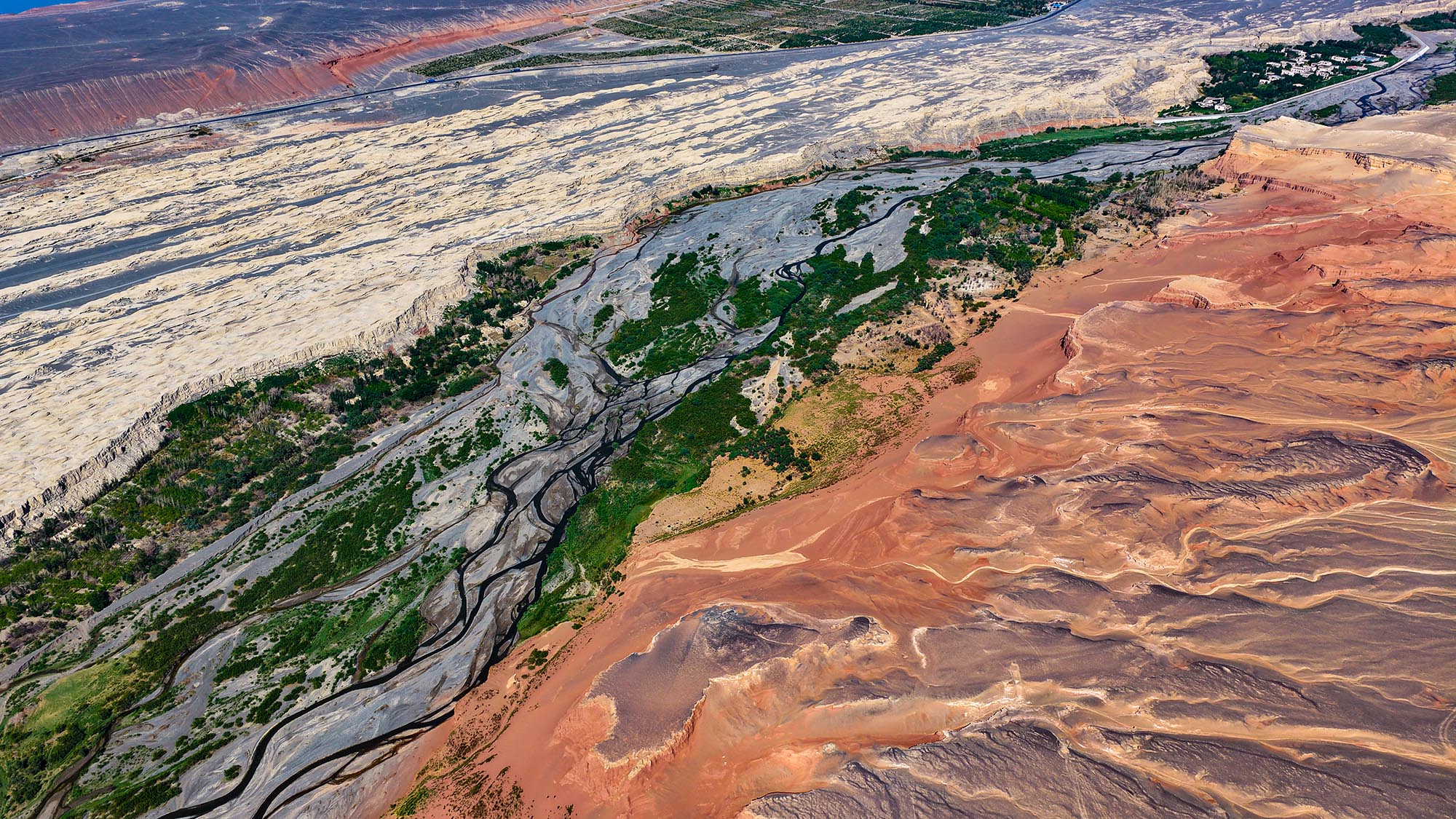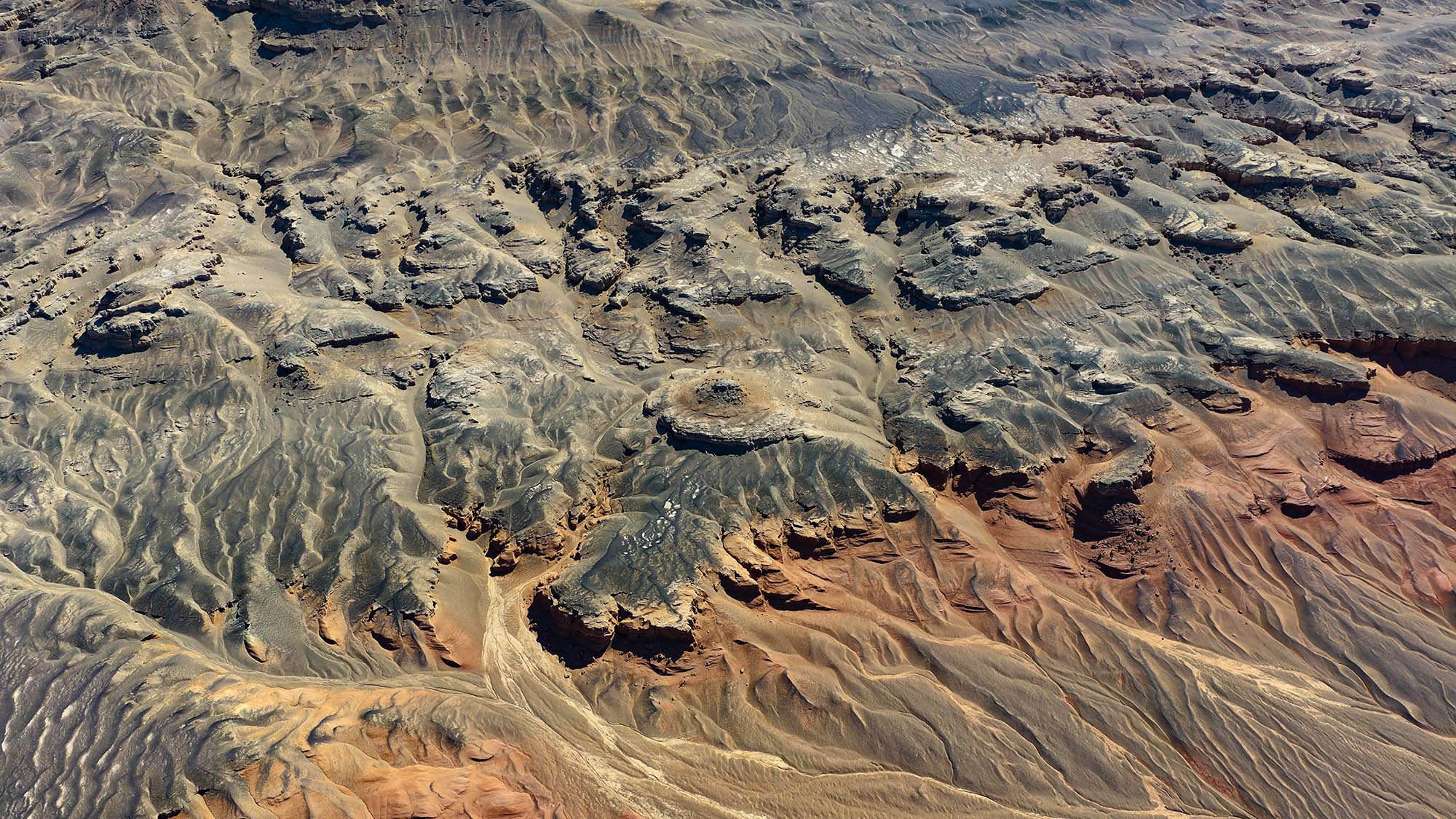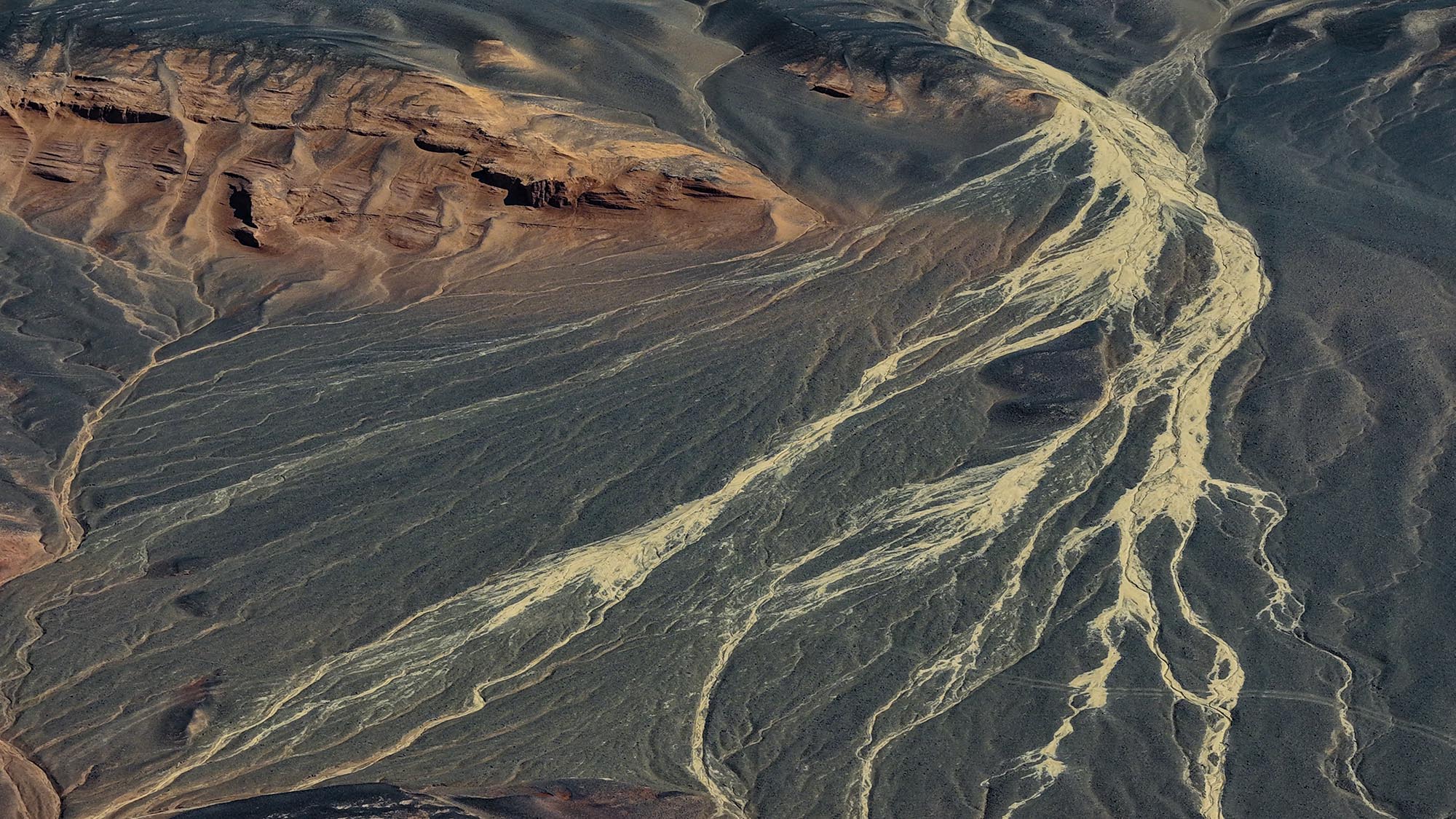 雨水从山体流下,干涸后形成了一幅“大地动脉图”